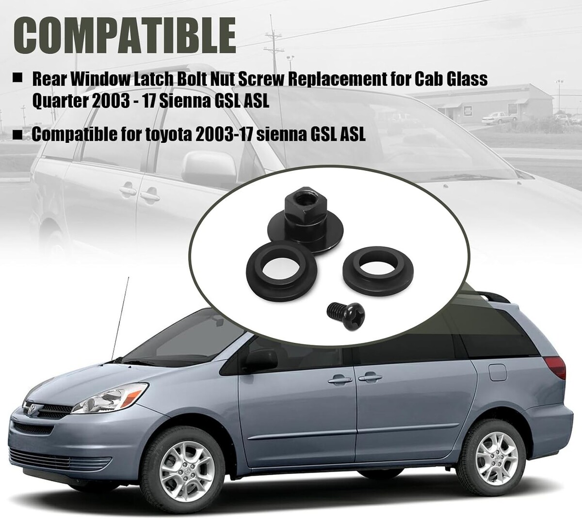 Fit: Rear Window Latch Bolt Nut Screw Replacement for Cab Glass Quarter 2003 - 17 Sienna GSL ASL, Compatible for toyota 2003-17 sienna GSL ASL