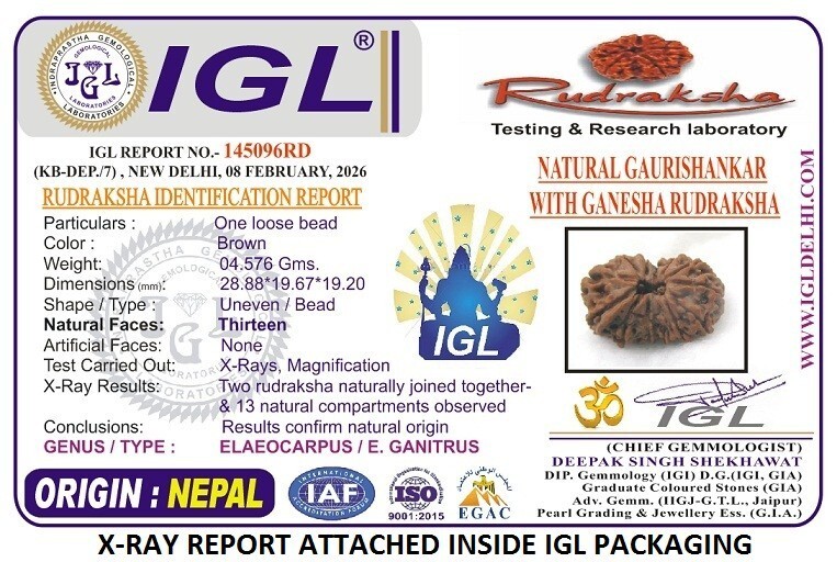 Gauri Shankar Ganesh Rudraksha – Nepal – 13 Mukhi – 28.88 mm - IGL Certified