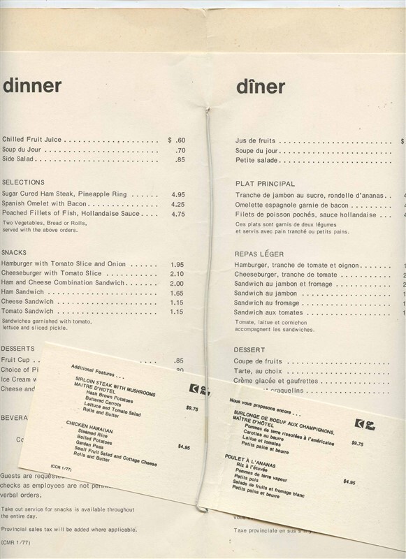 CP Rail Dining Car Service Dinner Menu and Beverage List 1977