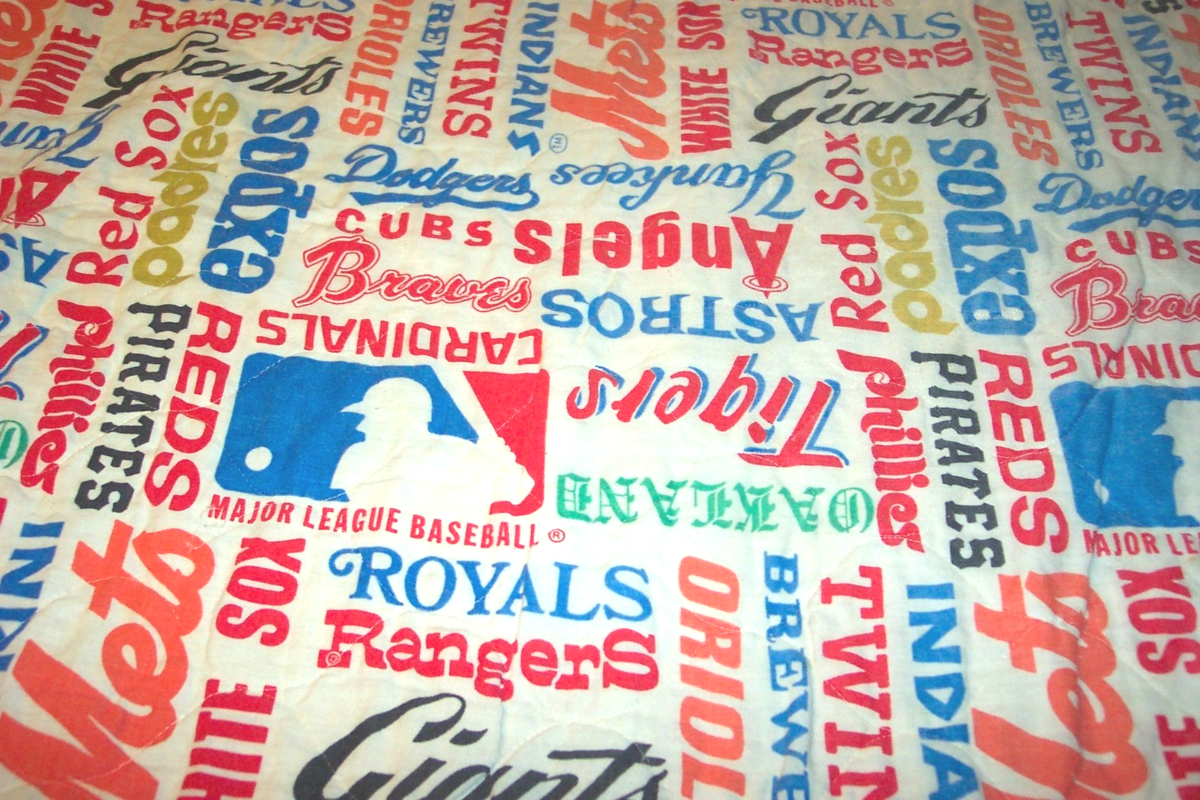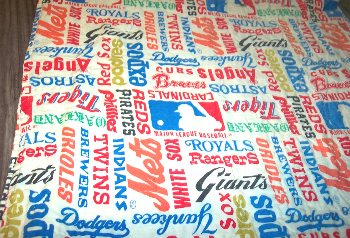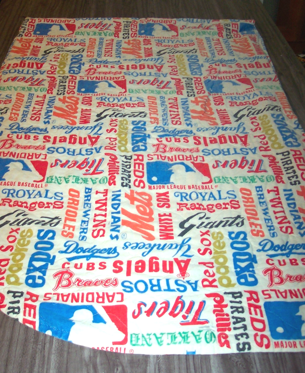 Vintage SEARS 1980's MLB BASEBALL Team Logo Quilt Blanket Bed Spread 76 X 104