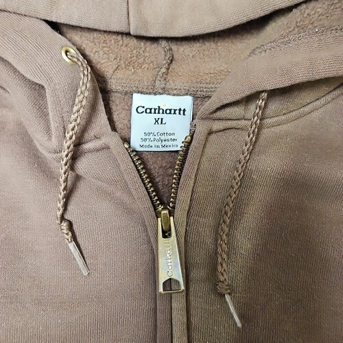 Carhartt Loose Fit Hoodie Mens XL Brown Fleece Faded Grunge Zip K122 Sweatshirt