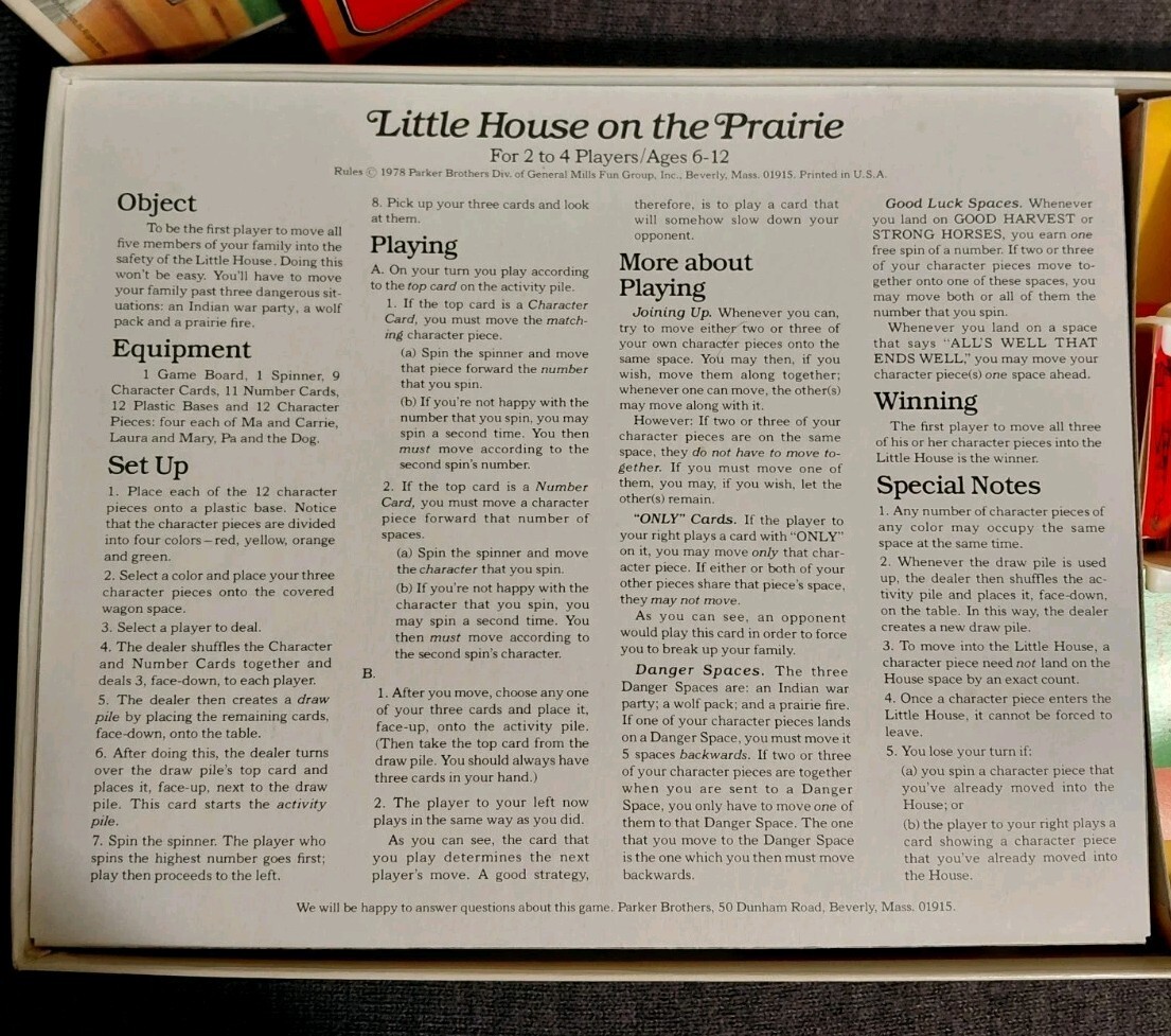Vintage 1978 Parker Brothers Little House On The Prairie Board Game *Near Mint*