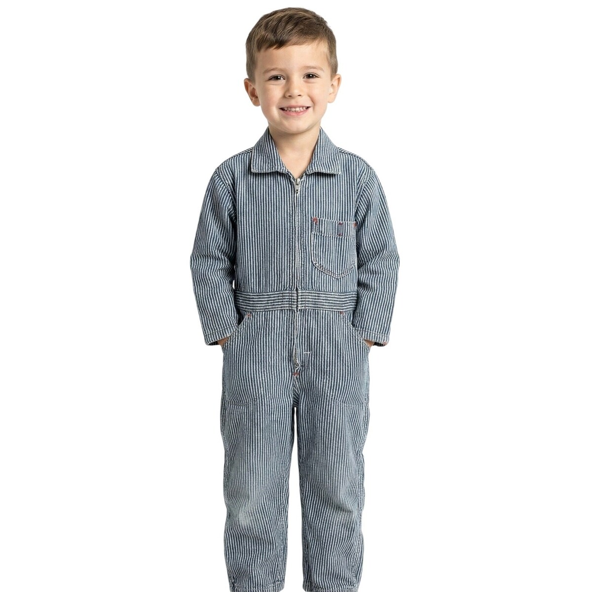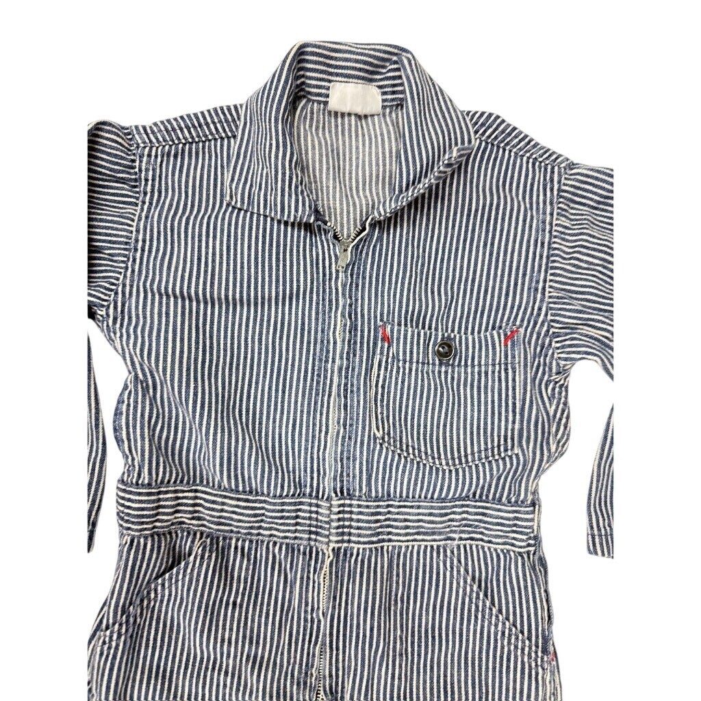 What you?ll love about this vintage JCPenney Toddletime coverall is the classic railroad hickory stripe denim and authentic workwear construction?an iconic miniature version of adult chore wear, perfectly scaled for a child. Has a metal Talon zipper.