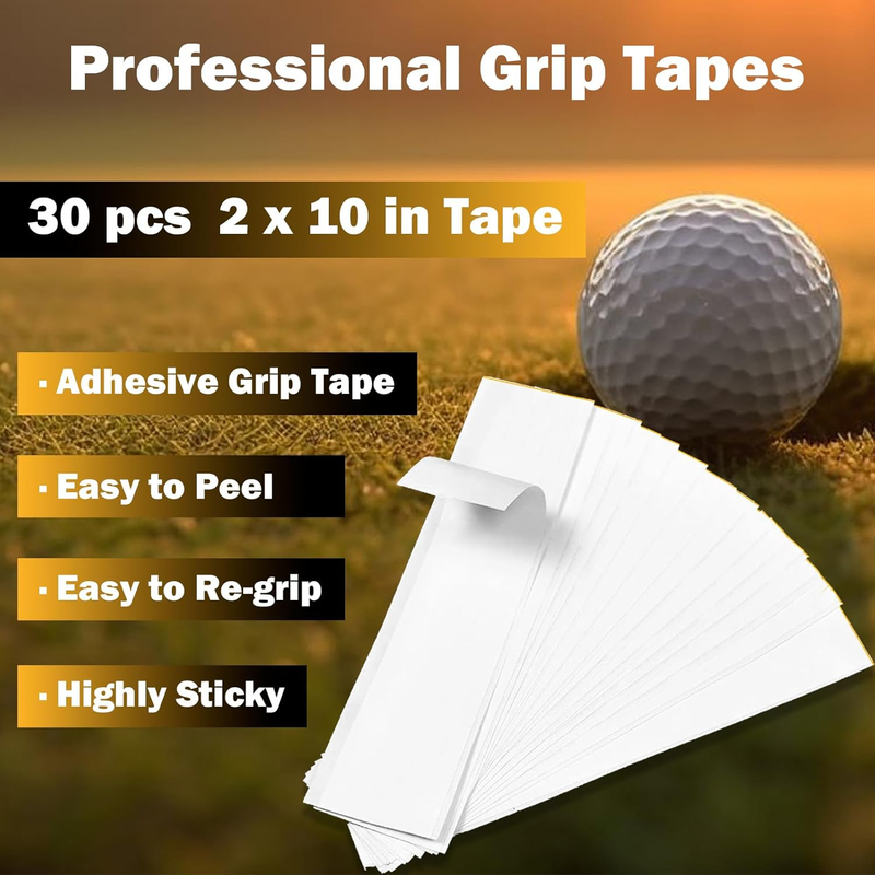 Premium Tape Fast-Acting Solvent: Includes 15pcs professional 2"x10" double-sided tapes for strong, residue-free bonding. Upgraded 5 ounce solvent, non-toxic, and non-flammable, dissolves old glue instantly, activates new tape adhesion, and ensures smooth grip installation. Perfect gift for golfers at any skill level!