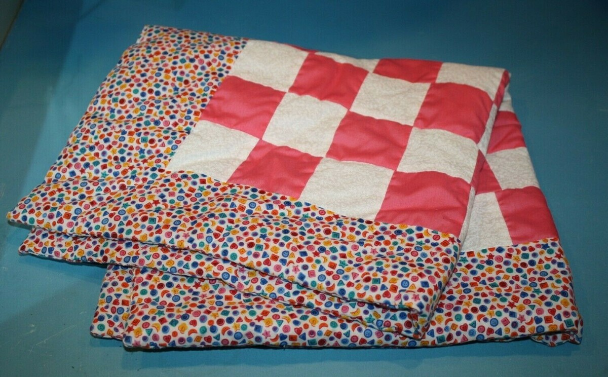 Patchwork Lap Quilt Small Baby Doll Crib Bed Handmade Mini Pink White 26" x 27"