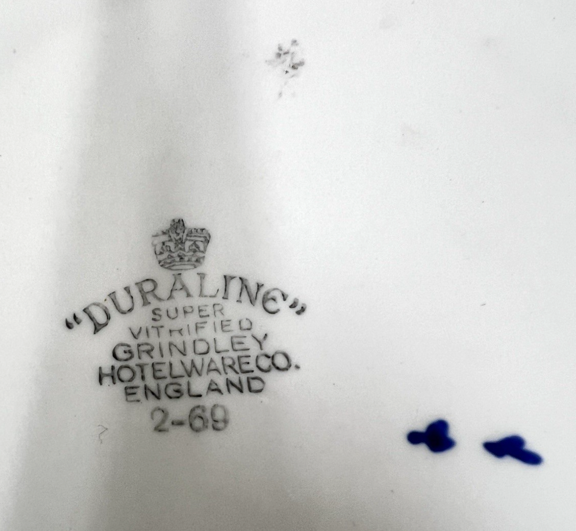 Vintage Canadian National Railways Maple Leaf Logo Pattern Blue Gold Stripe Rim Border Accent measures approx. 8" Lunch Salad Plate. Very good condition plate with minimal if any signs of use, colors and logo pattern in very good condition. Duraline Grindley Hotelware England 2-69 backstamp. See pictures.