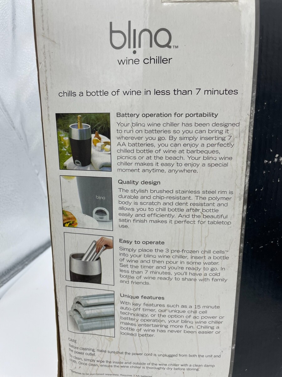 Blinq Portable Wine Chiller AC Power or Battery Operation made by Breville Gray