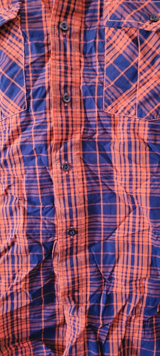 Men's Nautica Jeans Co. Shirt Size L Button-Up Orange Blue Plaid UVA Cavaliers