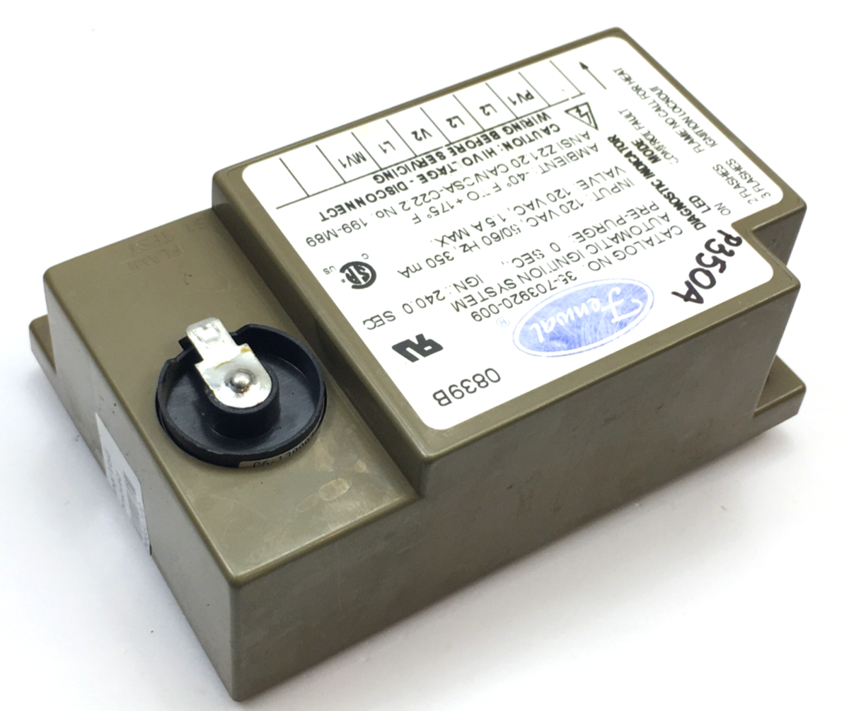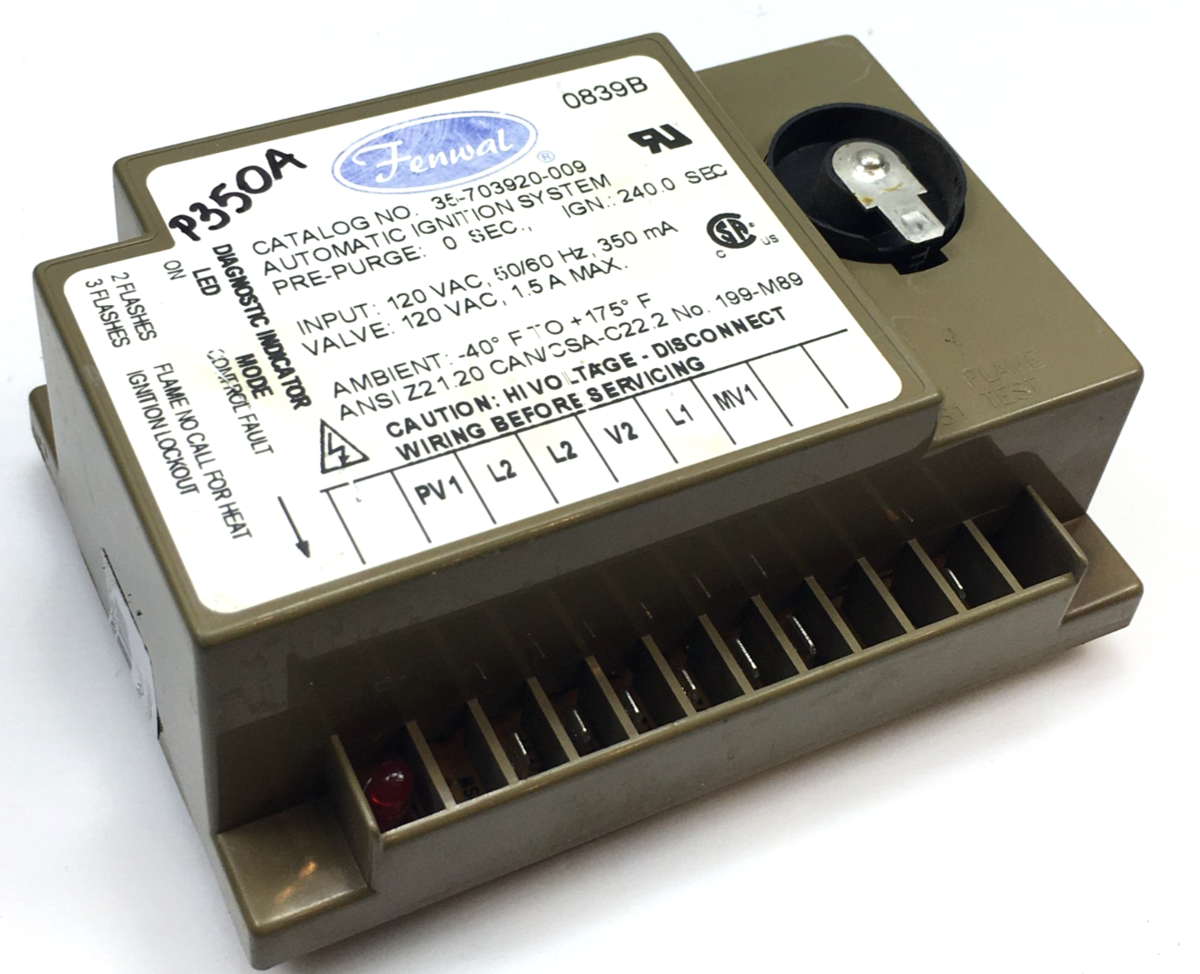 This is Fenwal 35-703920-009 Ignition Module 120 VAC 50/60Hz used part.