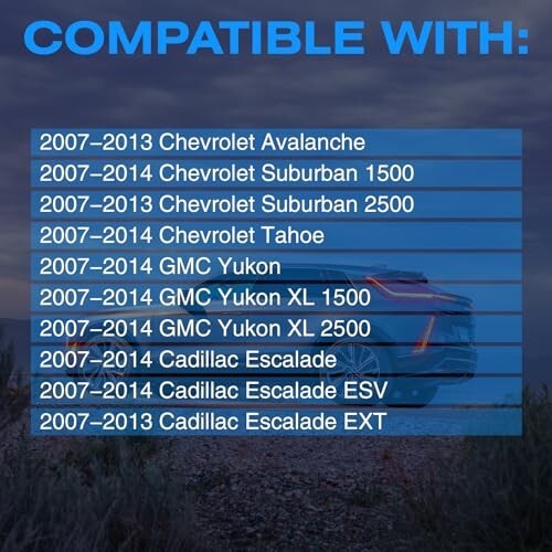 Door Seal Weatherstrip Replacement number#22766409 22766410,driver passenger side Door Seal Weathers triping Compatible with:2007-2013 Chevy Avalanche, 2007-2014 Chevy Suburban 1500, 2007-2013 Chevy Suburban 2500, 2007-2014 Chevy Tahoe; 2007-2014 GMC Yukon XL 1500, 2007-2013 GMC Yukon XL 2500;2007-2014 Escalade,2007-2014 Escalade ESV,2007-2013 Escalade EXT Easy Installation:Door Seal Weatherstrip is soft can be bent at will to provide a good seal.Cut at will and easy replacement of old strips on driver and passenger sides Durable:Adding a metal plate makes the seal stronger.Premium rubber cold and heat resistant, noise reduction,insulate the door from the outside Hoiedt weather strip:Offer 2 year unlimited-mileage guarantee.Ordering with confidenceWe provide quality products to ensure the sealing of car doors