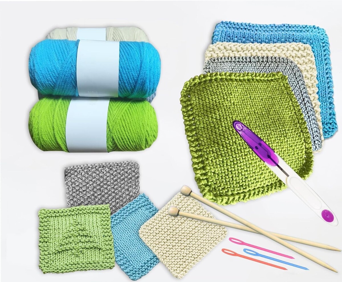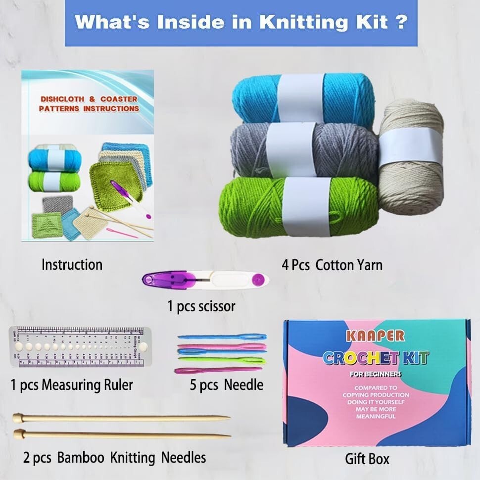Elegant Beginner Knitting Kit: Create 4 Dishcloths 4 Coasters for DIY Crafts