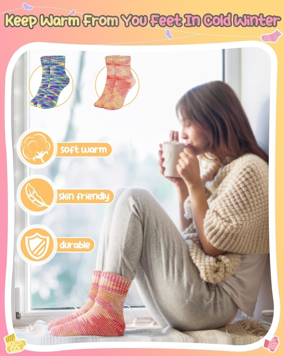 Warm Socks Creation: Includes 4 brightly colored balls of super soft cotton yarn allowing you to knit 2 pairs of cozy socks.