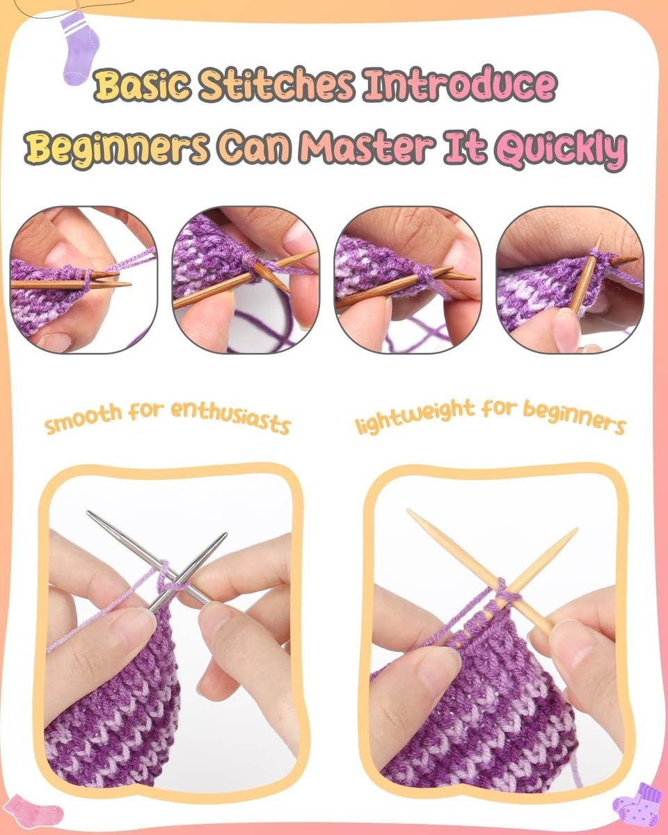 Knitting Kit for Beginners: Includes a photo-illustrated sock pattern book that guides you through each stitch from the slip knot to weaving in ends.