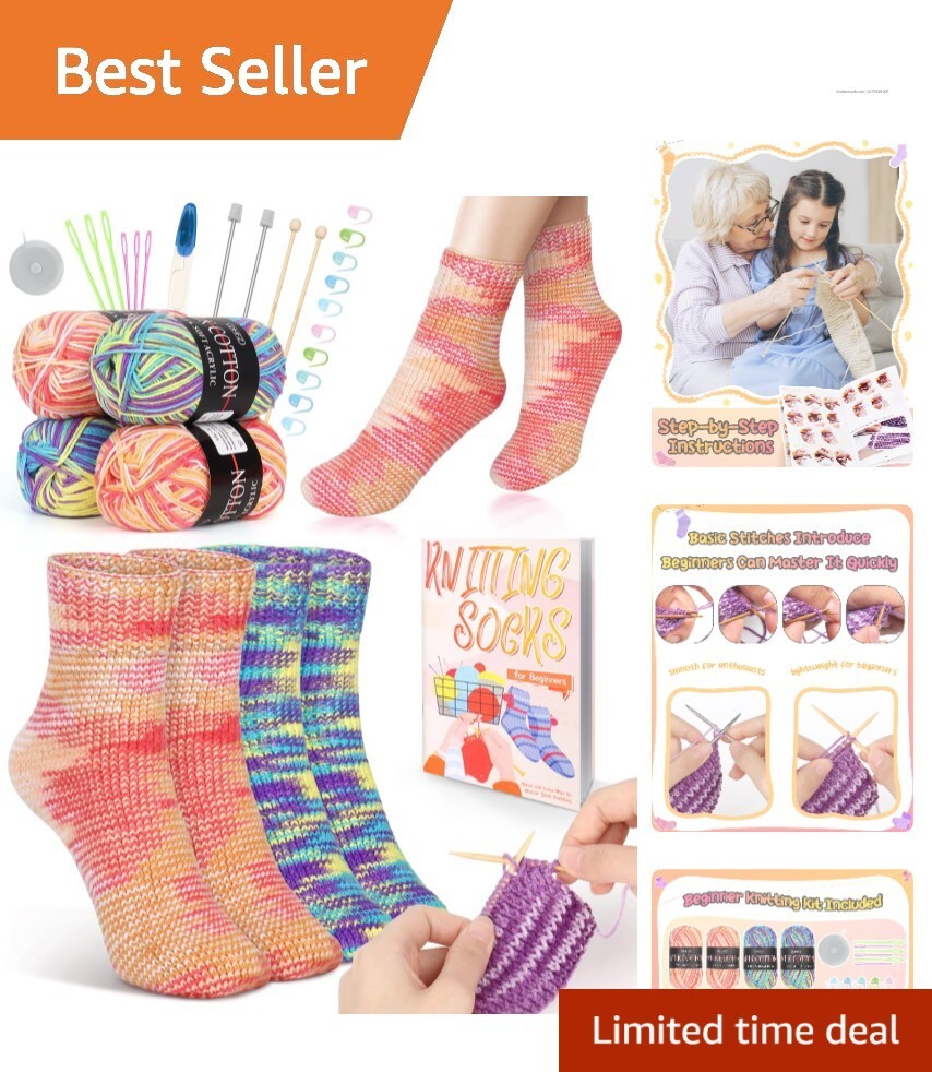 Complete Knitting Starter Kit for Adults - Master Sock Creation Effortlessly!