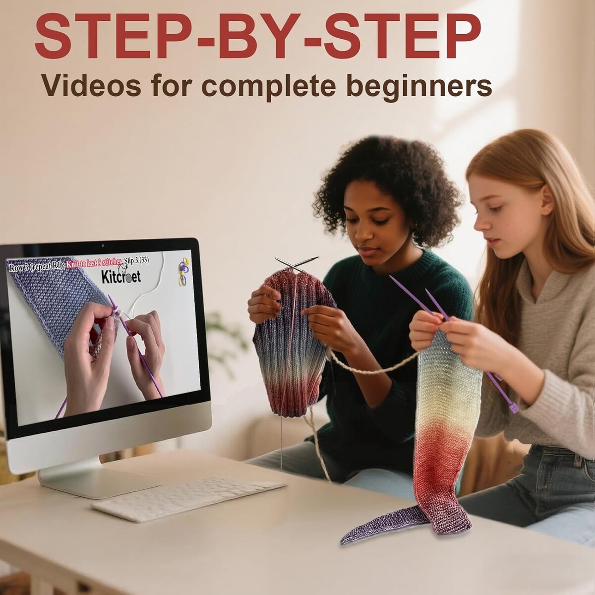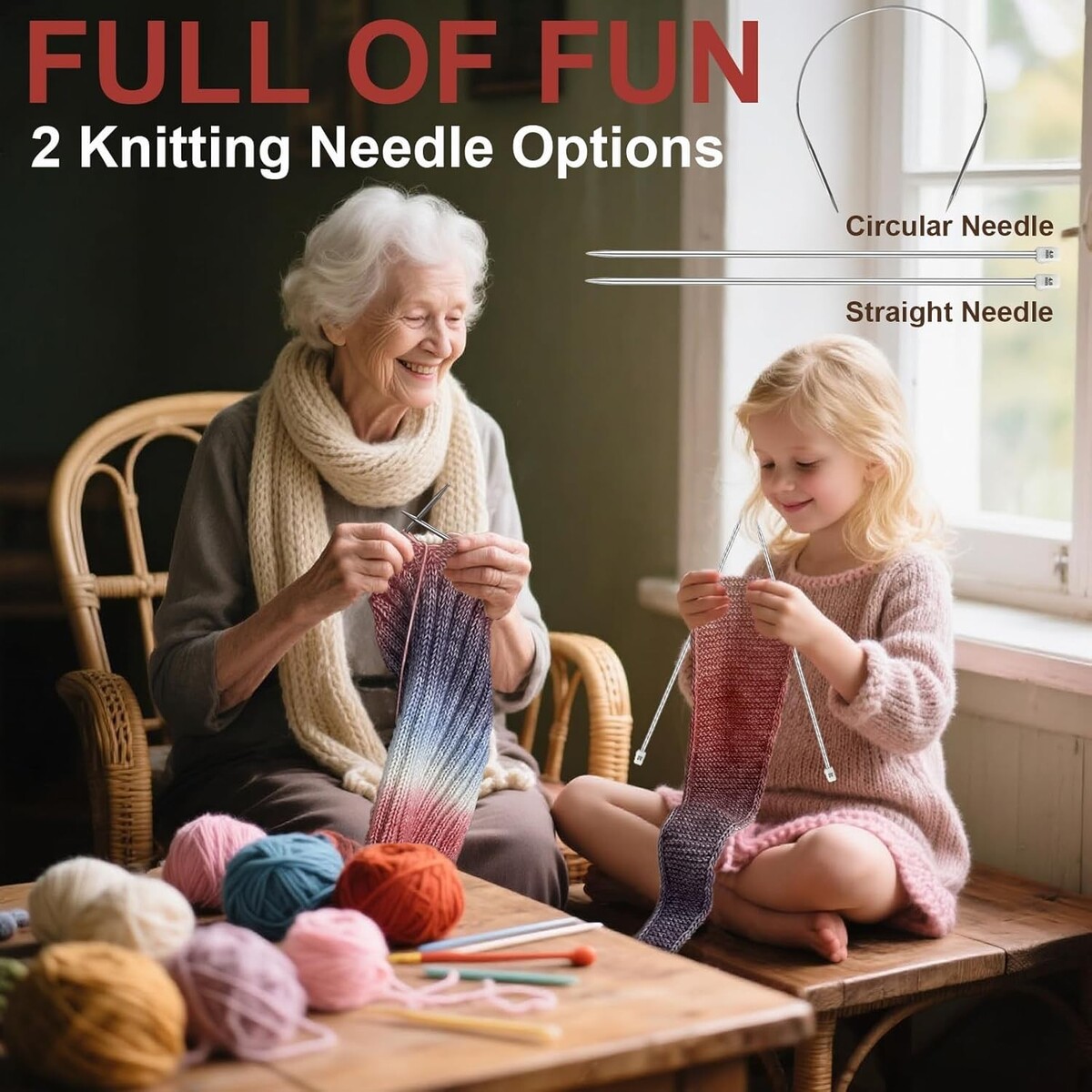 Versatile Knitting Kit for Adults - Includes Needles & Step-by-Step Tutorials
