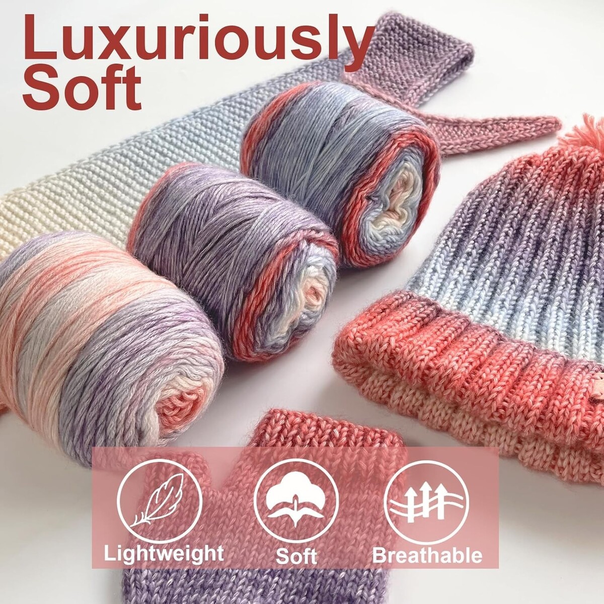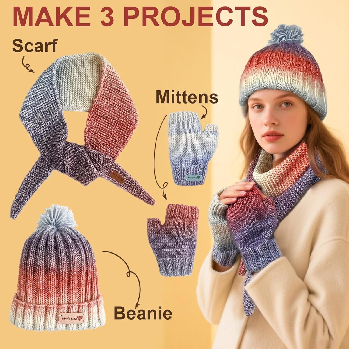 Includes nearly everything you need: super soft gradient cake yarns, smooth single-pointed knitting needles, circular needles, and useful accessories.