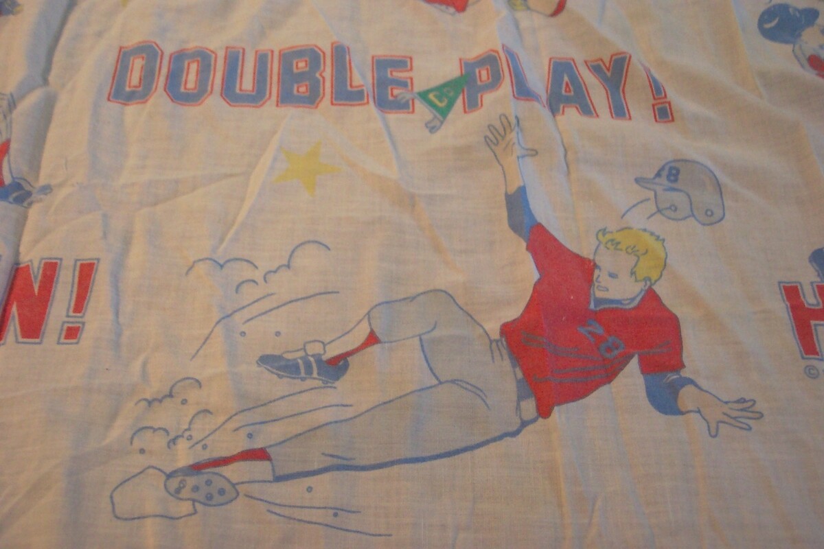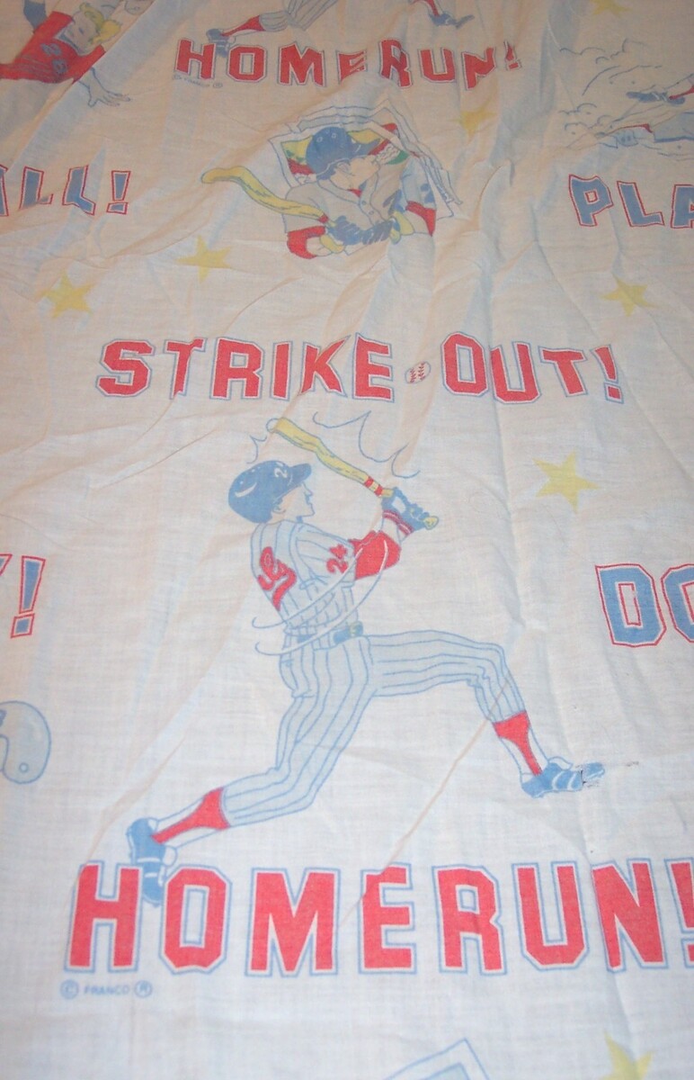 This is a Vintage BASEBALL Players Homerun Strike Out Double Twin Size Fitted Sheet Twin SIZE FITTED SHEET. It is in great condition. It is CLEAN! No Tears, Stains or Holes. Made By Franco. Combine auctions to save on shipping. EAG