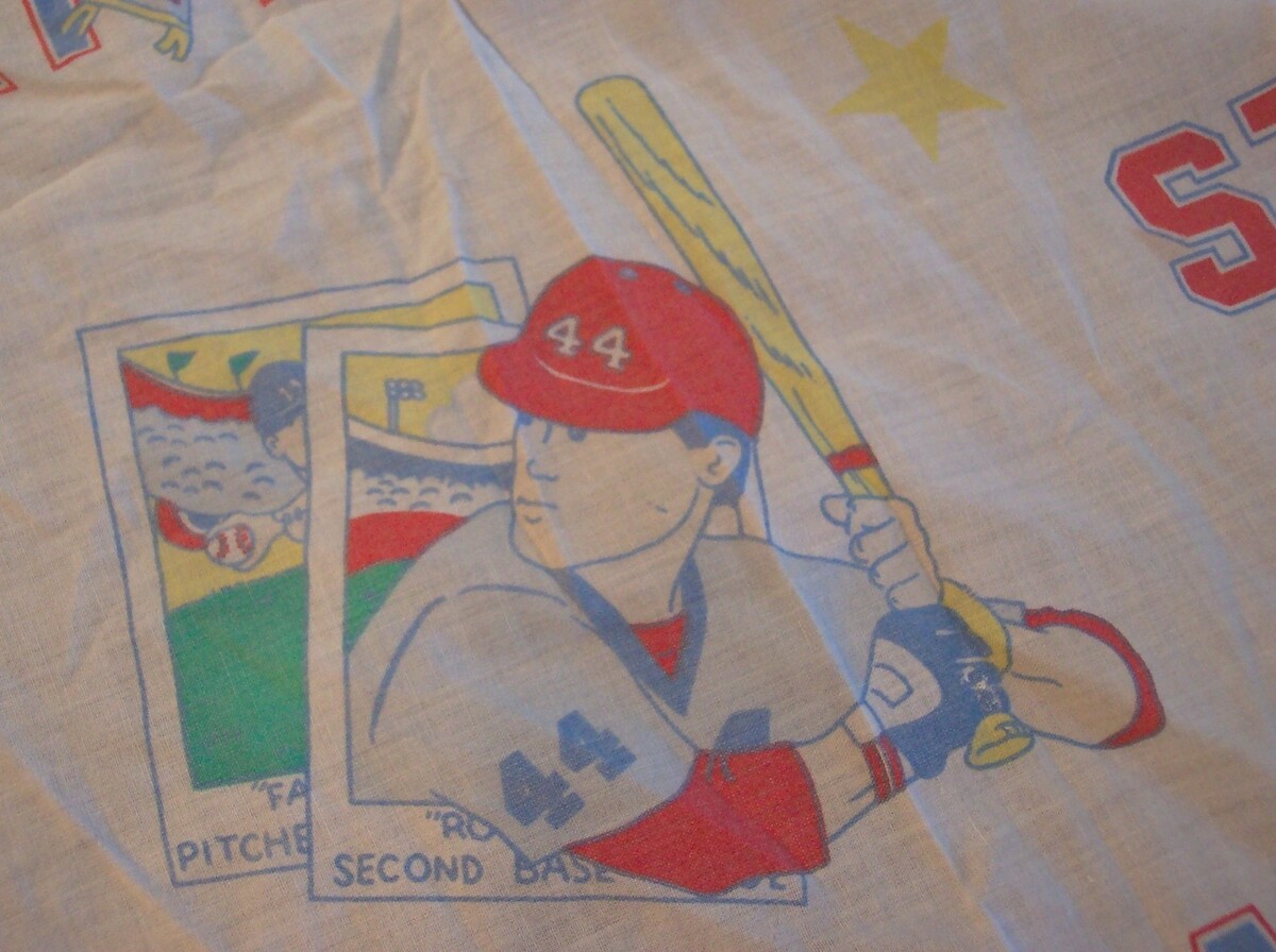 Vintage BASEBALL Players Homerun Strike Out Double Twin Size Fitted Sheet Franco