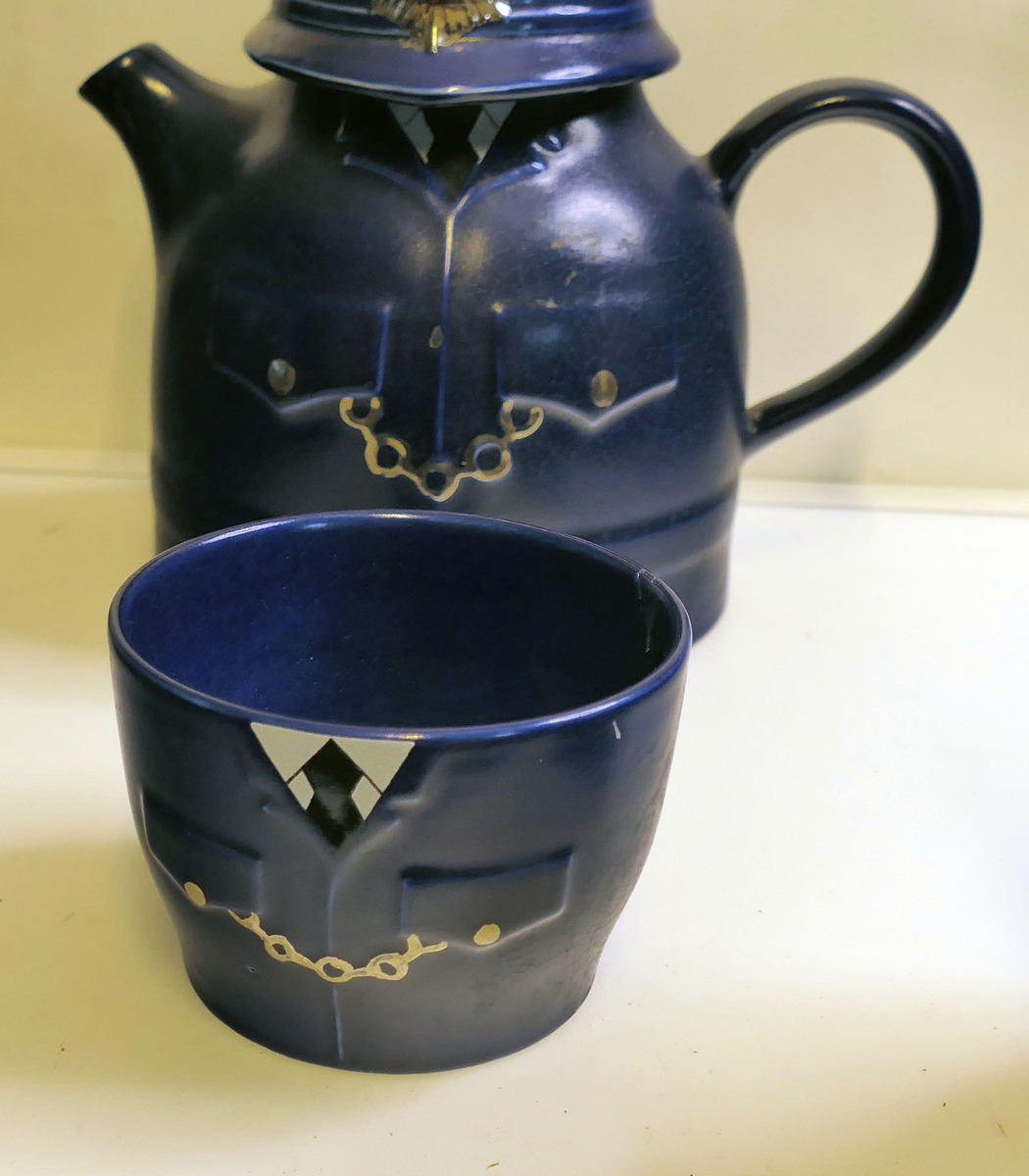 Teapot with police helmet lid