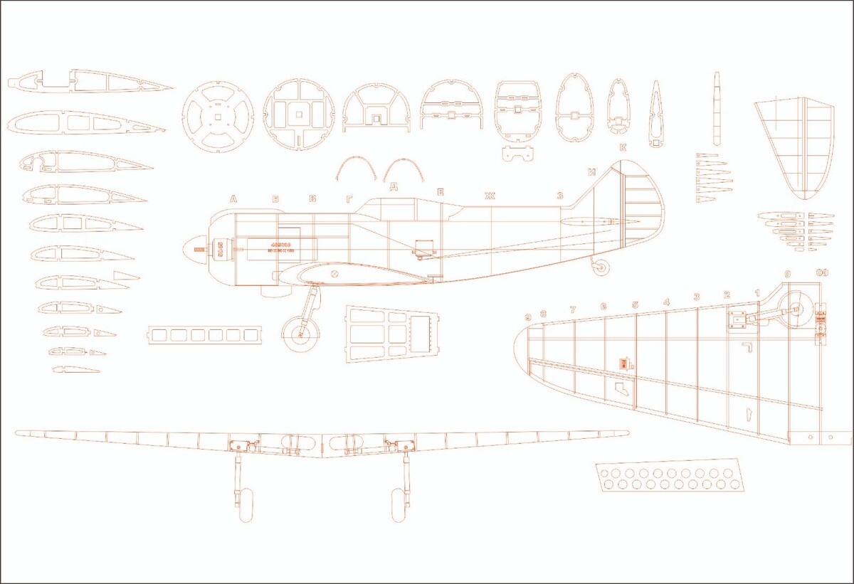 RC Plane La 5FN,1400mm Wingspan,DXF Files for WarBirds Model Builders,Plans DXF