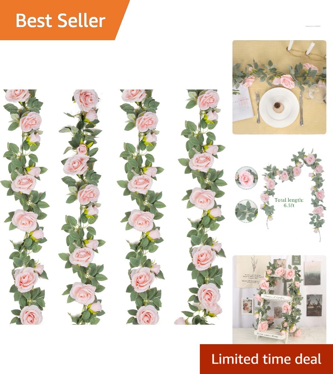 4PCS 6.5FT Lush Pink Artificial Rose Garland for Wedding & Garden Decor