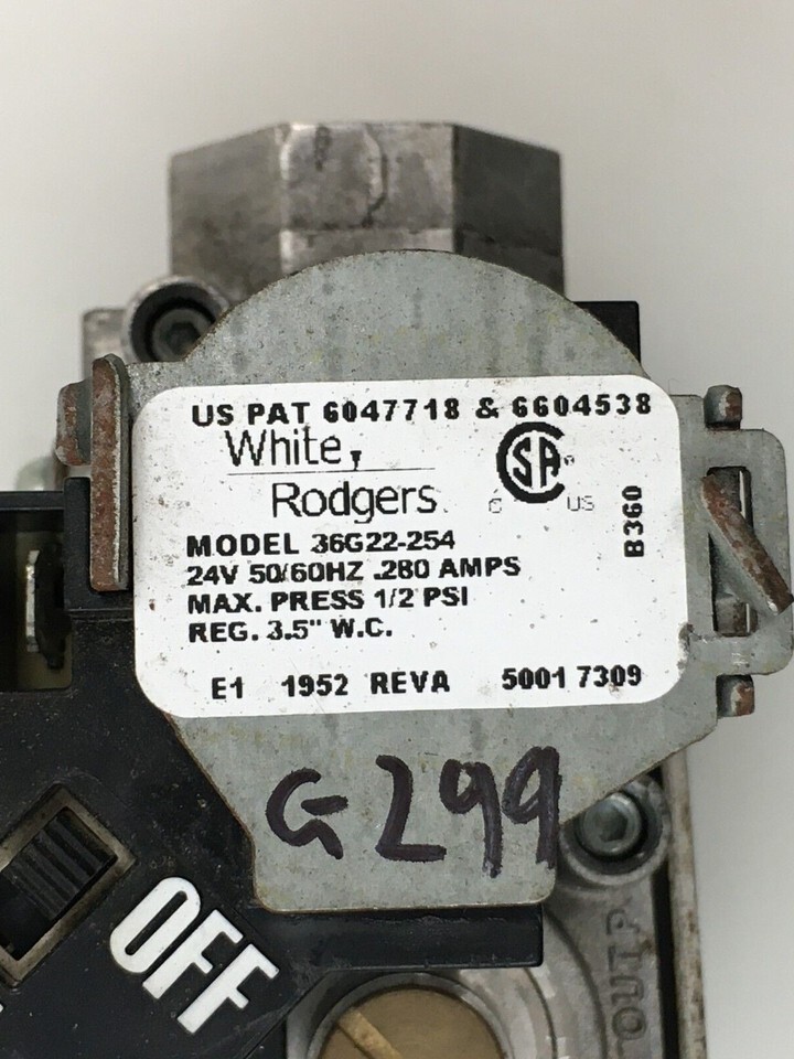 White Rodgers 36G22-254 GEMINI Furnace Gas Valve used #G299