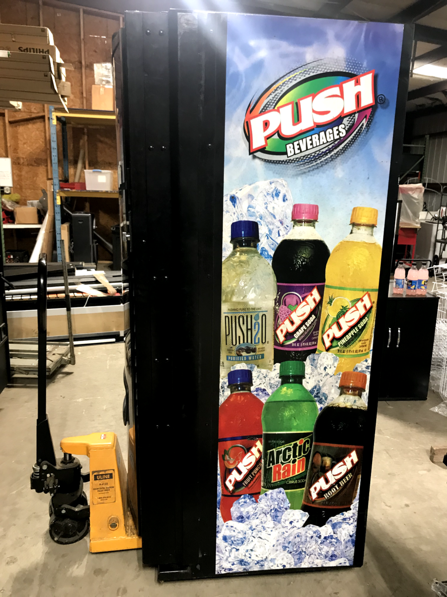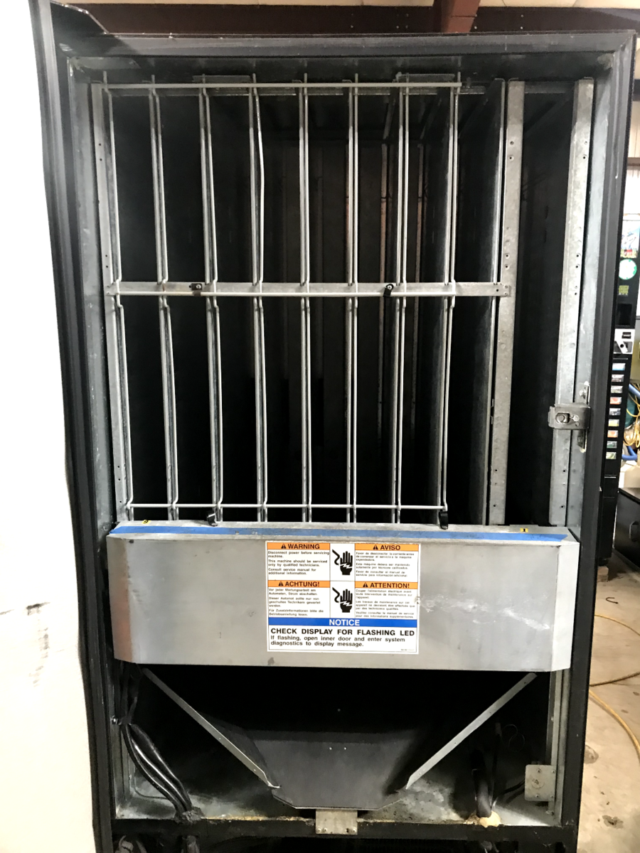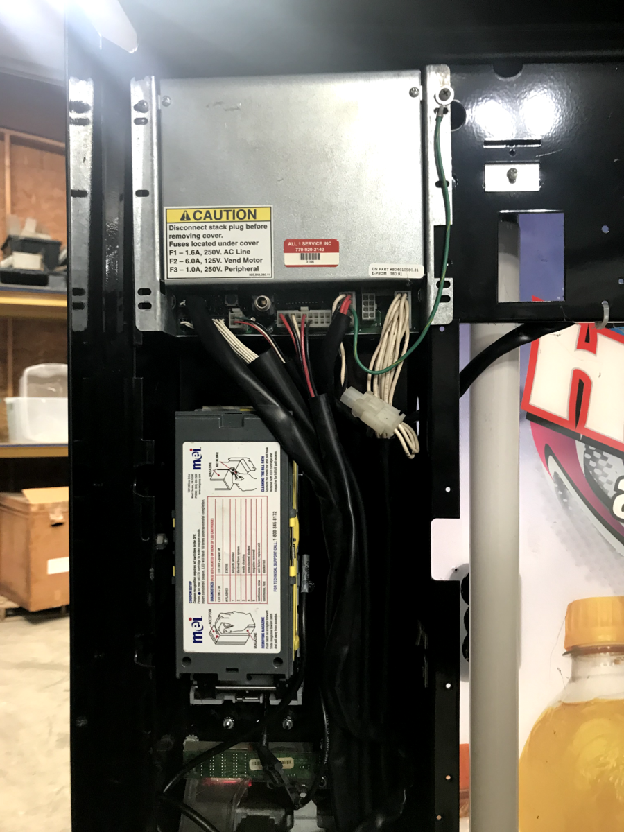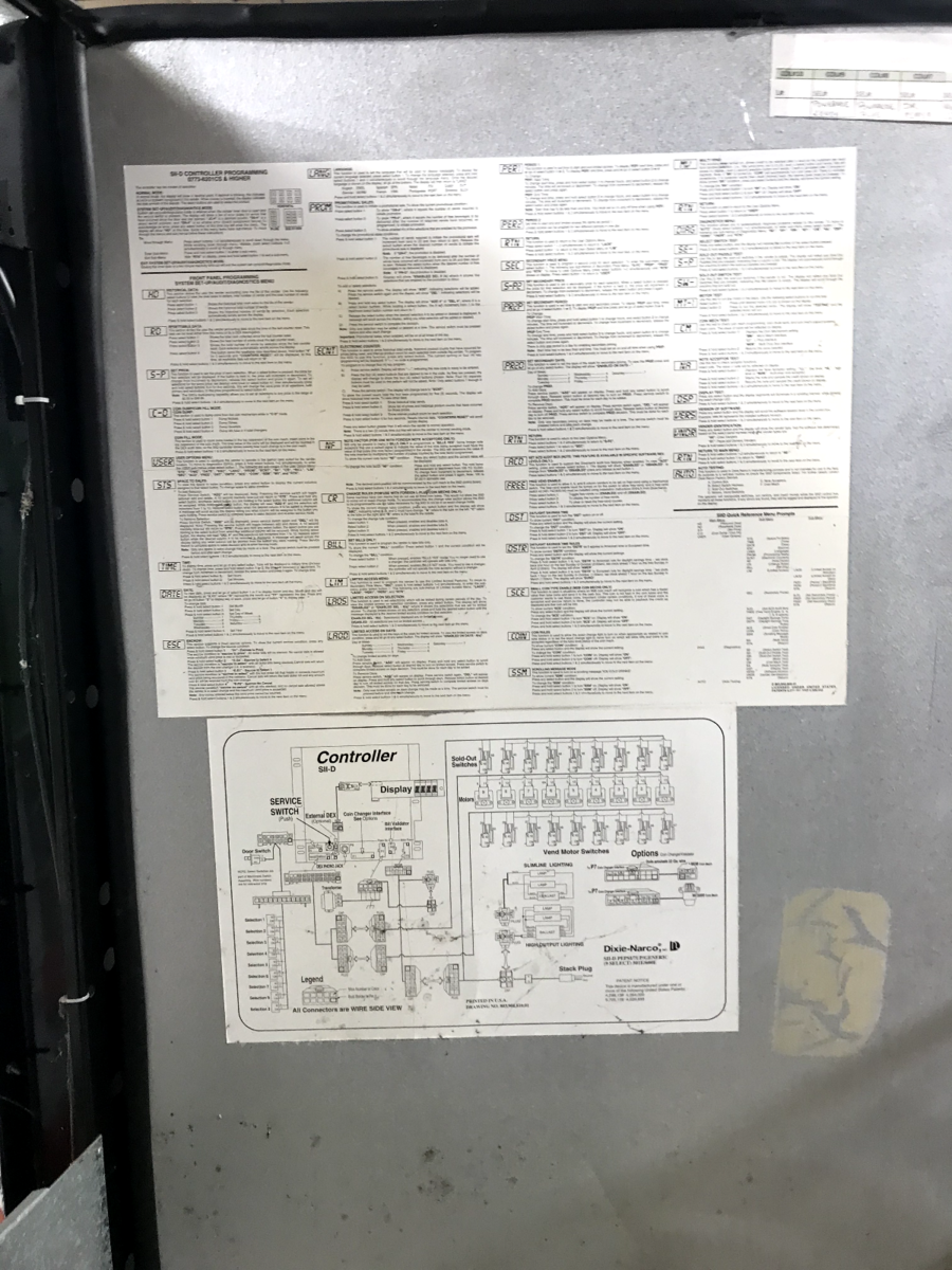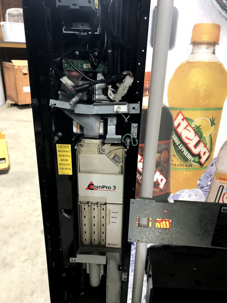 Dixie Narco 501E Soft Drink vending machine. It is a 9 column, 9 Selection Machine. It is capable of vending cans or bottles and is currently adjusted to vend 20 ounce bottles..Parts for conversion to cans are NOT included. It has the SIID controller with 380.91 EPROM and is capable of supporting card reader equipment. Card reader equipment is NOT currently installed. Vends and cools perfectly. Available for local pick up in Winston Georgia.