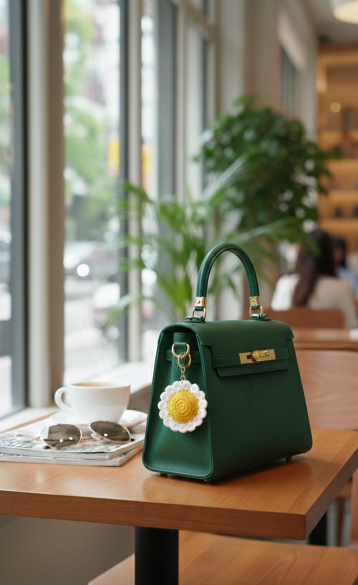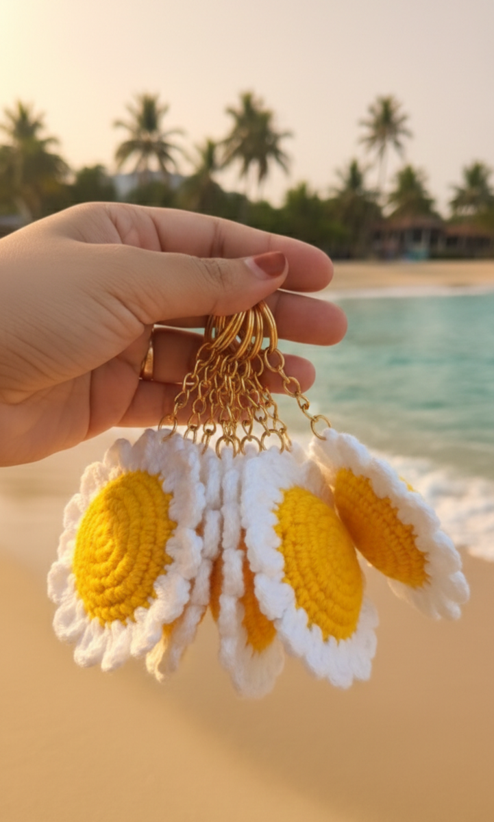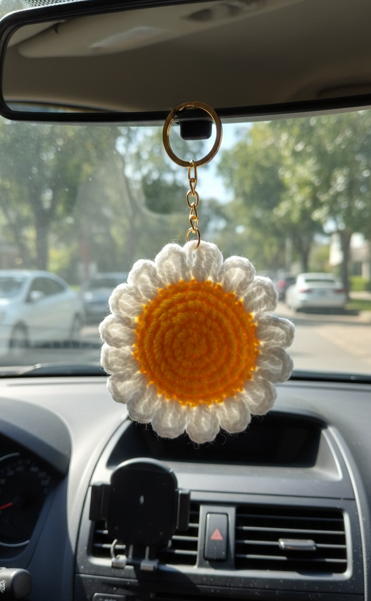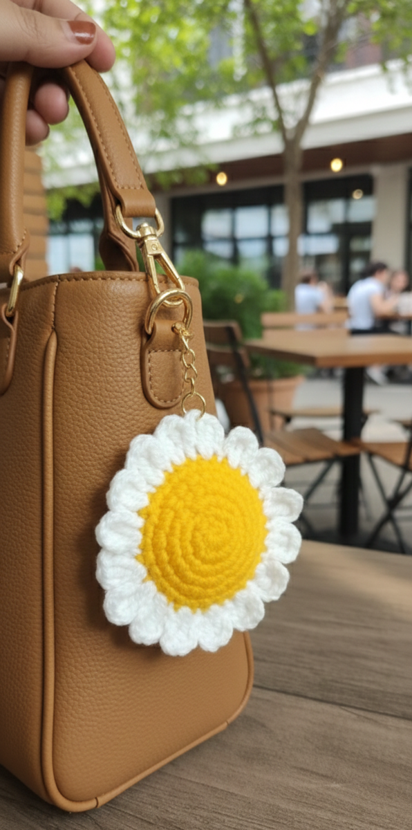 Handmade Crochet Daisy Flower Keychain – Cute Floral Bag Charm