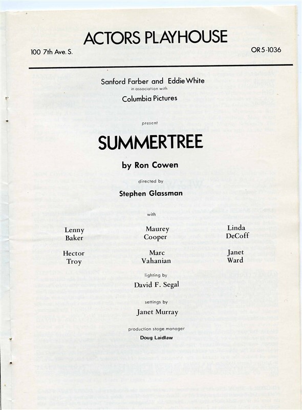 Summertree Playfare Ron Cowen Actors Playhouse New York April 1970