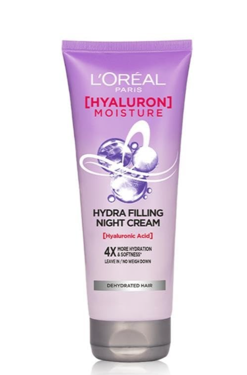 L'Oreal Paris Hyaluron Moisture Hydra Filling Leave-in Night Cream, Powered by Hyaluronic Acid, For Dry Dehydrated Hair, Volume-180ml, Makes hair frizz-free, bouncy and hydrated for up to 72HR