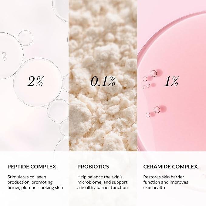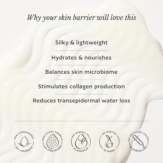 Want to feel like your face is in the clouds? This silky, lightweight formula is just what you need. It sinks into the skin easily, and is packed with nourishing ingredients like probiotics and peptide complex, that reinforce the skin barrier, blur the look of pores and maintain the skin's moisture levels.