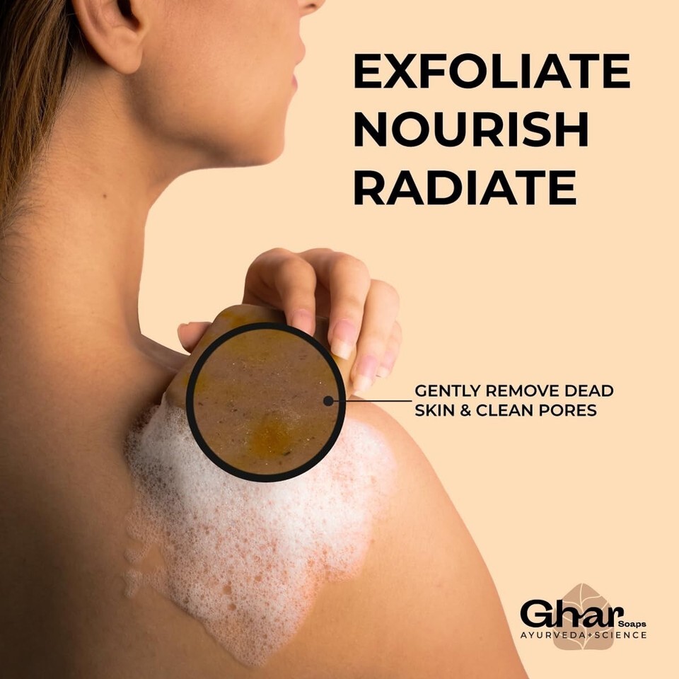 Ghar Soaps Exfoliating Body Gloves & Sandalwood Saffron Magic Soap 100Gm