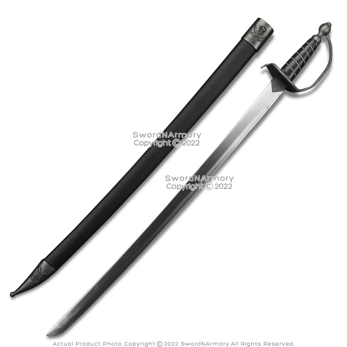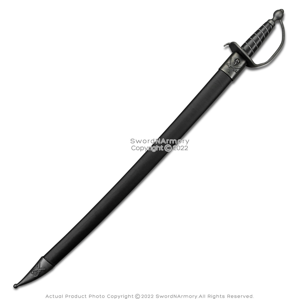 35" Classic Caribbean Pirate Cutlass Sword Bow Guard with Skull Scabbard