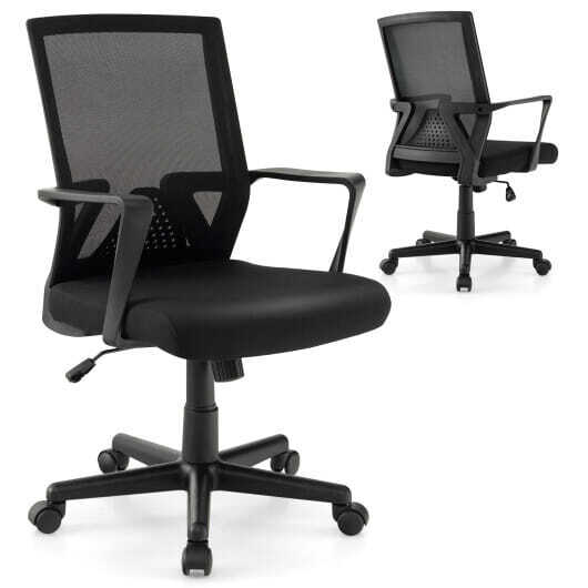 Ergonomic Desk Chair with Lumbar Support and Rocking Function-Black - Color: Black