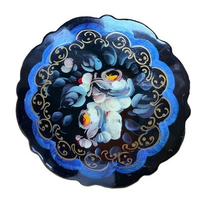 VTG 70s 80s Russian Hand Painted Floral Lacquer Brooch Pin Signed Zhostovo Style