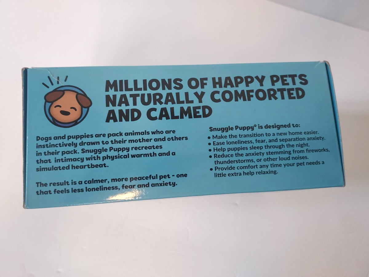 Snuggle puppy for Medium to Large Breeds. Like brand new. Looks new, no marks or blemishes. Tested with batteries in it, Works well.