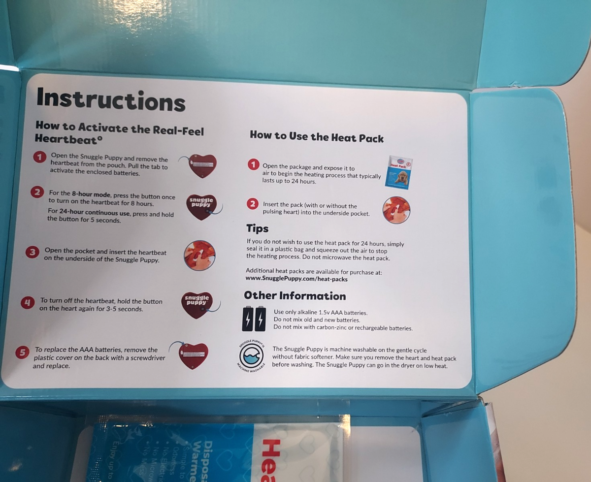 EASY TO USE Real-Feel Heartbeat Dog Toys, batteries included! The Snuggle Puppy toy with heartbeat has a 'real-feel' pulse that calms your pup, appealing to natural instincts by mimicking a mother and litter mates. Two AAA batteries included.