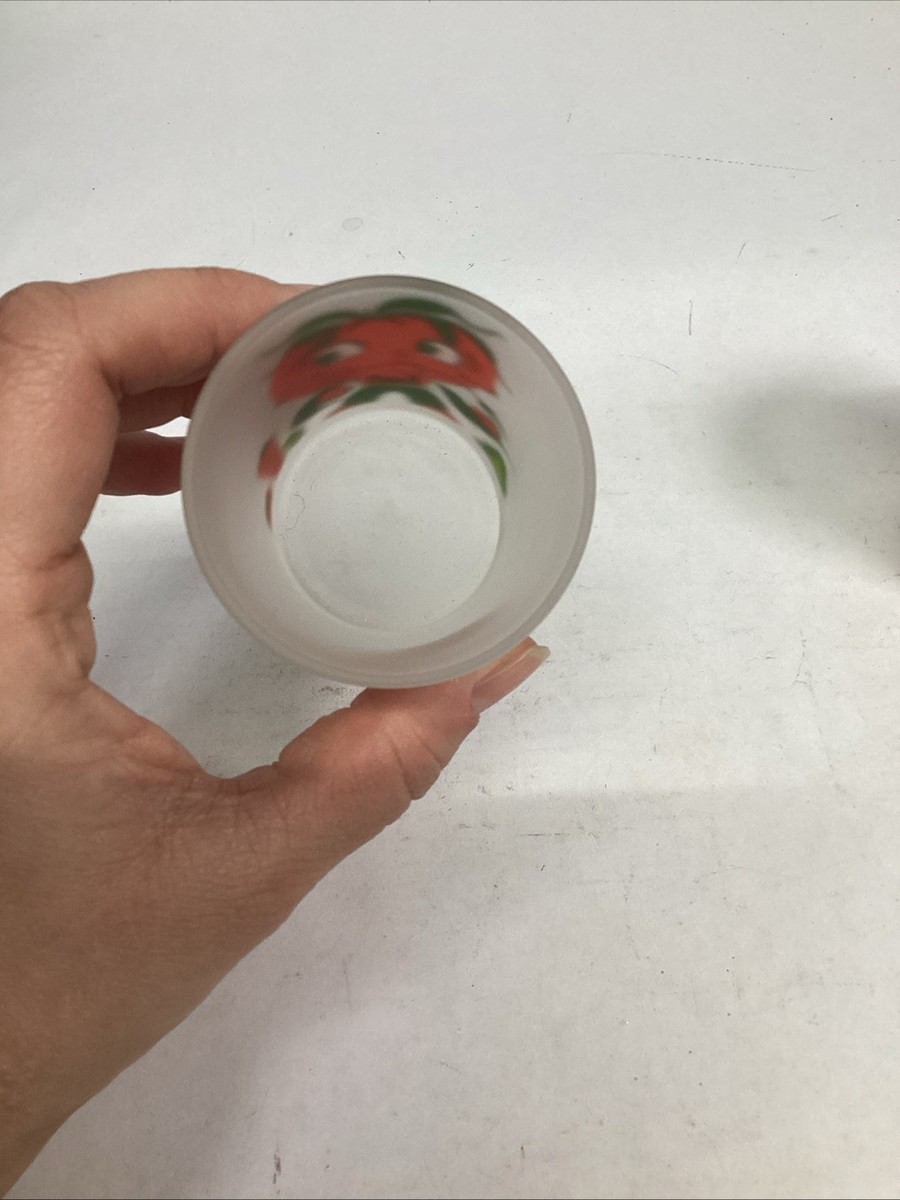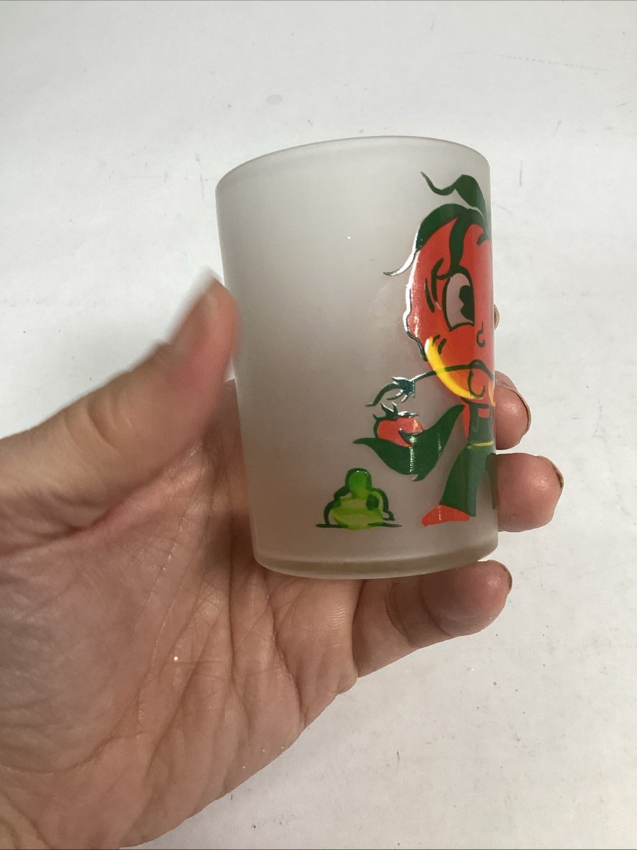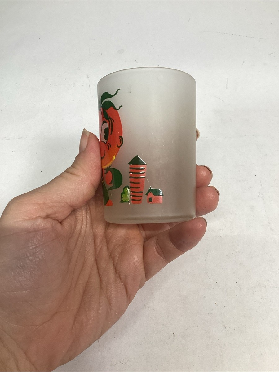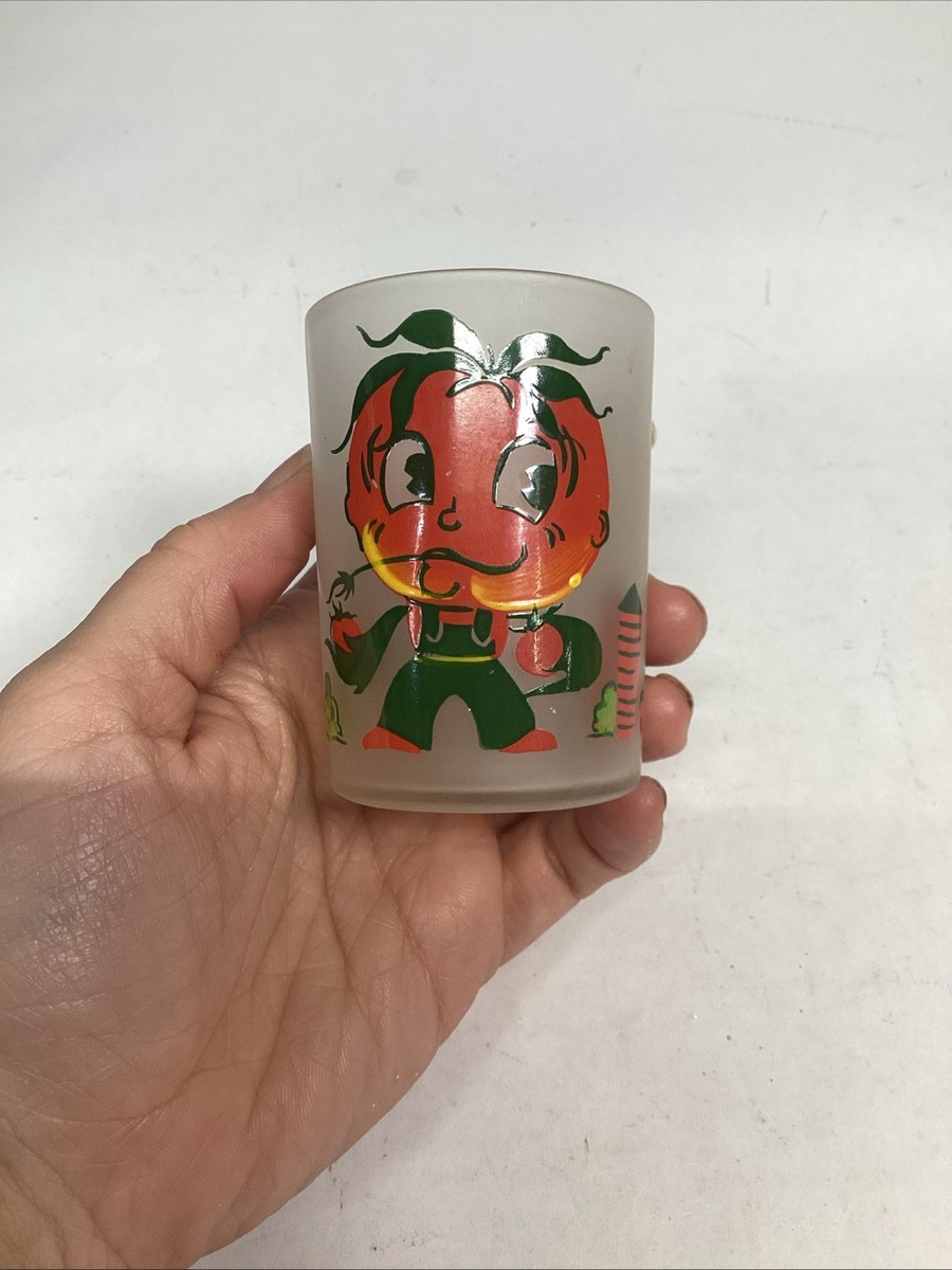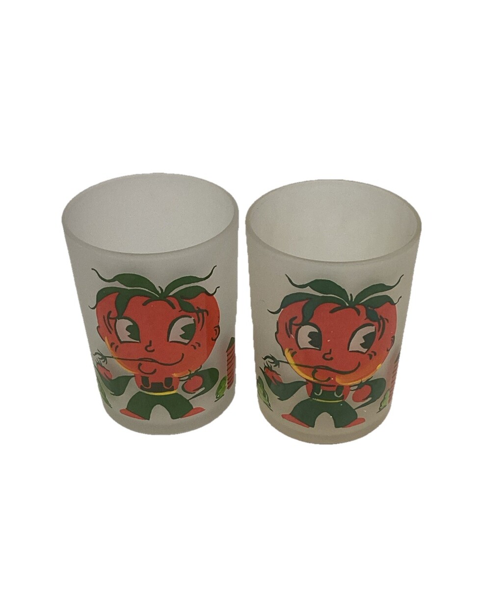 Vintage Hazel-Atlas Tomato Juice Anthropomorphic Frosted Glasses - Set Of 2. In good, used condition. One glass has a few light scratches in it. These measure 3?Hx2?D