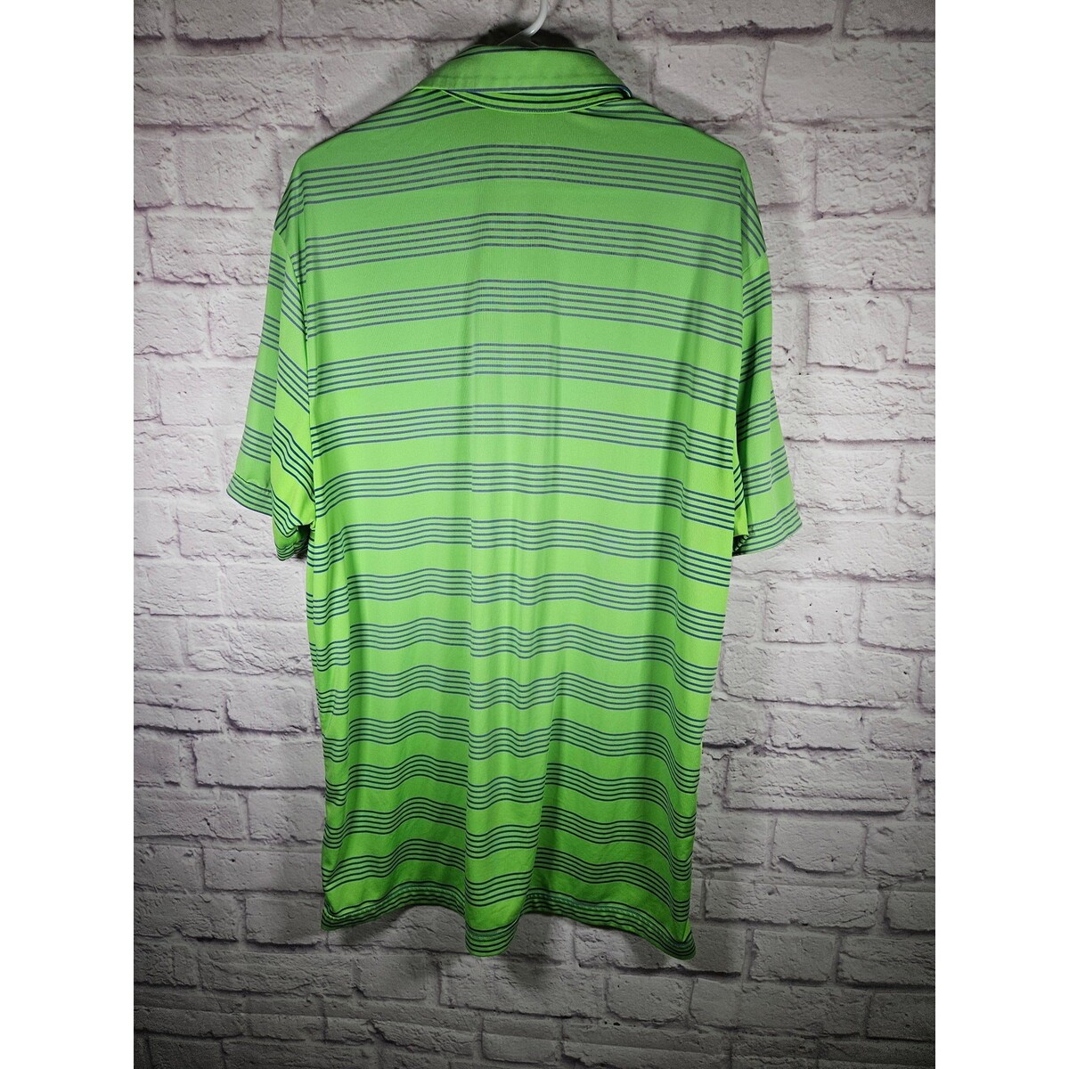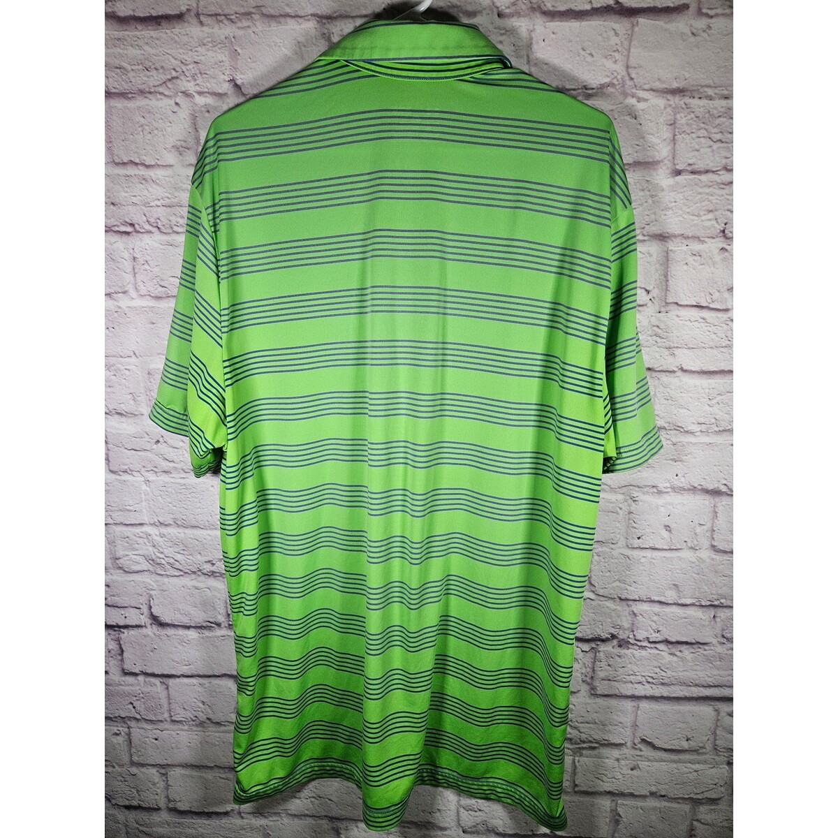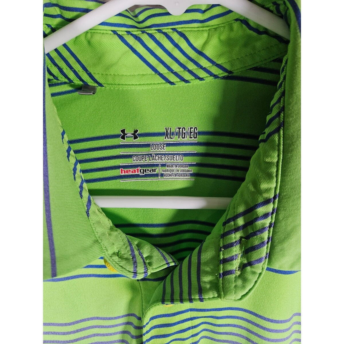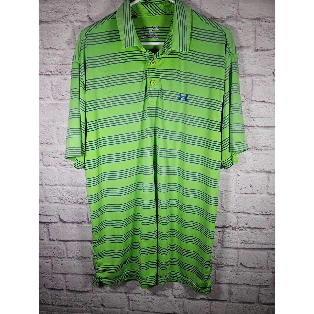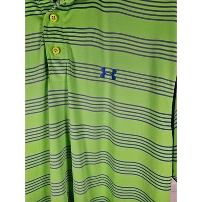 Under armour Mens SS Polo Shirt Heat Gear Bright Green Blue Stripes Size XL