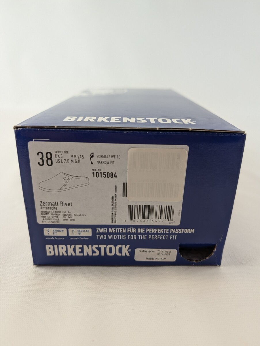 BIRKENSTOCK Women?s Sz 7 /EUR 38 Narrow Fit Zermatt Rivet 1015084 Anthracite New. Condition is New with box. Shipped with USPS Ground Advantage.