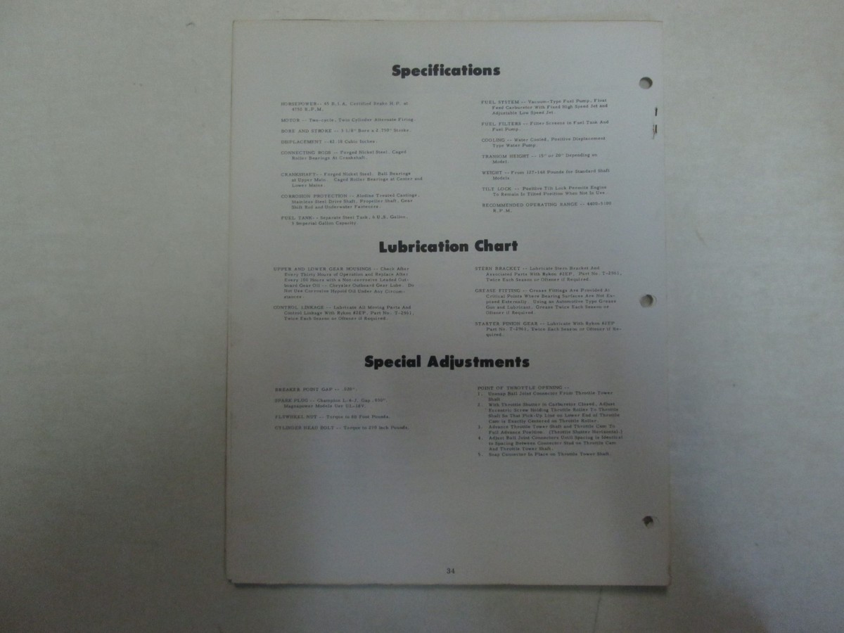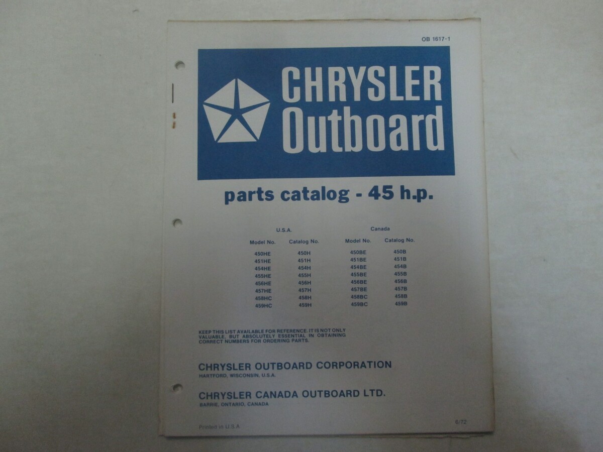 1972 Chrysler Outboard 45 HP Parts Catalog If you have further questions feel free to message us We will leave POSITIVE Feedback after we receive your payment. Please do not forget to give us POSITIVE Feedback and FIVE Stars on all of the Detailed Seller Ratings! If you are not satisfied with your shopping Experience, please contact us to get a solution before you decide to leave a NEUTRAL or a NEGATIVE Feedback, We will do our best to solve any problems for you as soon as possible. We will provide you with the BEST POSSIBLE service because the POSITIVE Feedback and FIVE Stars are what we are striving for. Please email me through "My Messages" or "Ask Seller Questions" if you have any question about our listings or your purchase. Please give us a Five Star Rating! Thank you very much! Auct