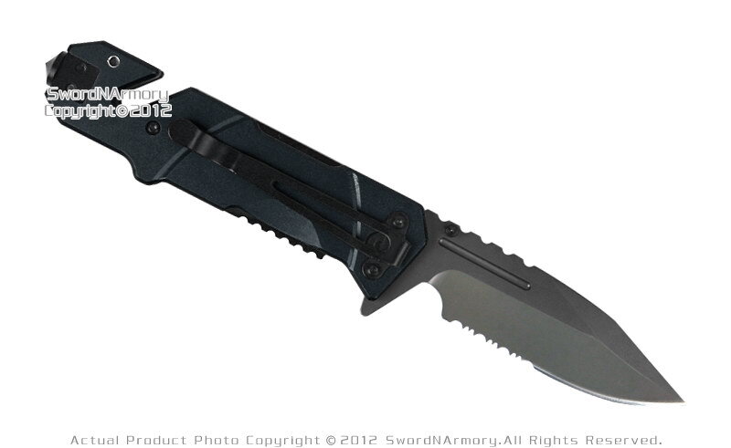 -The knife also features a belt clip, seat belt cutter, and steel punch.