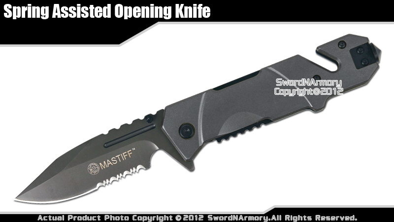 Mastiff Rescue Folding Assisted Opening Tactical Knife 7CR17MOV Steel Blade BK