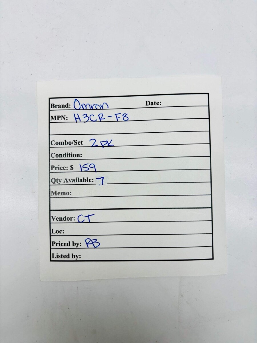2 Pk Omron H3CR-F8 Multifunction Timer Relay New This listing includes a quantity of 14 units. Only one unit is shown in the photos; the other thirteen are not pictured and may differ in external appearance, but all units are in the same condition. Omron H3CR-F8 is a multifunction electronic timer designed for industrial control applications. It provides accurate timing functions such as on-delay, off-delay, interval, and others depending on how it is configured. The timer is typically mounted in a panel and has easy-to-set dials or switches for selecting the desired time range and function. It is used to control the timing of operations in machinery, automation systems, and process control circuits. The H3CR-F8 helps ensure precise timing control for sequences, safety delays, and automated events in industrial systems. Listed by: Renee (Sales Team) ?there is no second chance if we never take the first? RRW (A positive moment brought to you by Help Resale) About Us Welcome to Help Resale, your go-to consignment shop where value meets quality. At Help Resale, we're dedicated to providing you with an exceptional shopping experience, whether you're looking to find the best deals or consign your items. Need to buy a product, but don't see it in our store? Please feel free to reach out to us and we will help you find it! Help Resale 7200 Fair Oaks Blvd Suite 120 Carmichael CA 95608 Business Hours: Monday-Friday: 9:00 am to 5:00 pm (PST) All product and company names are trademarks TM or registered trademarks of their respective holders. Use of them does not imply any affiliation with or endorsement by them.