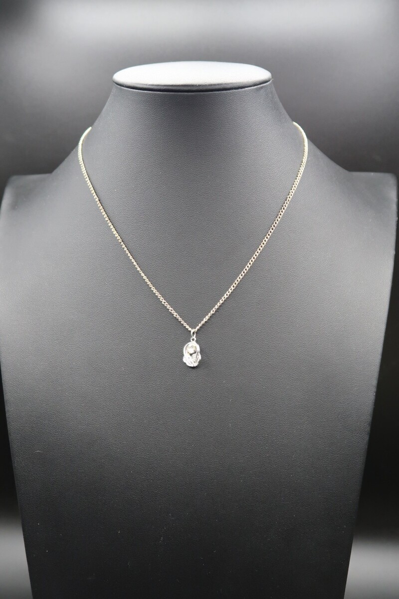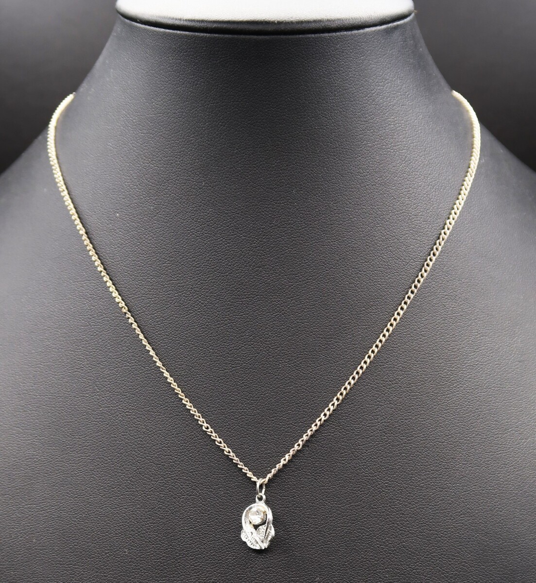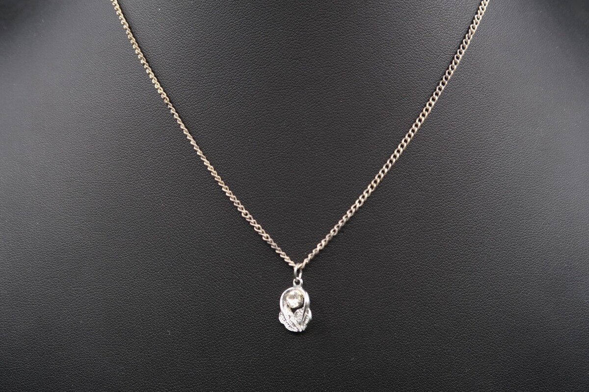 Vtg Necklace Silver Tone w/ White Rhinestone Leaf Pendent 16" Princess Length