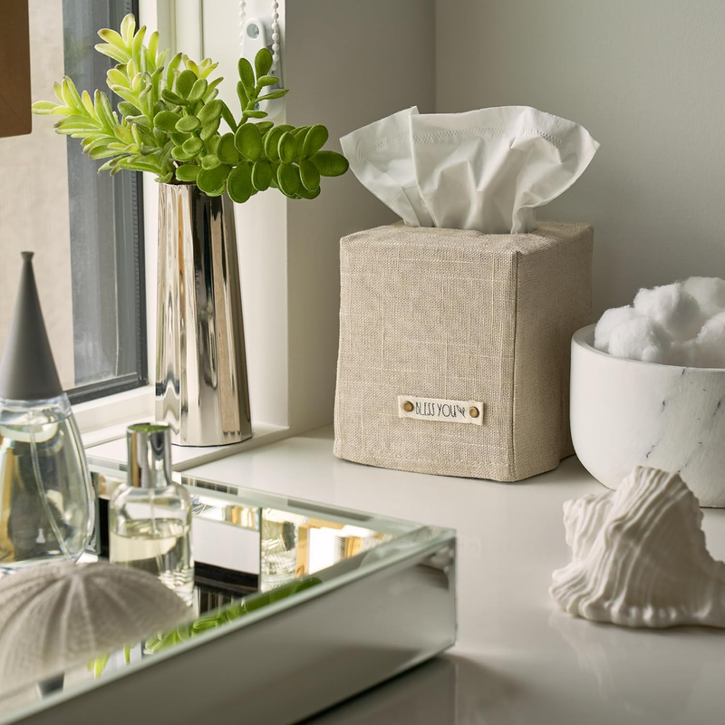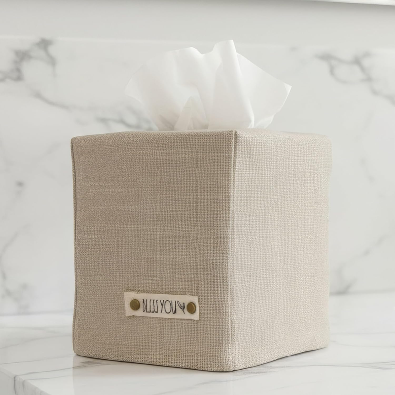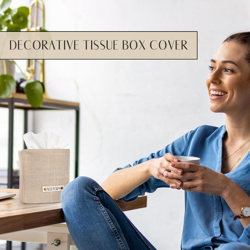 Stylish Tissue Box Cover - This Beige Linen Holder Instantly Covers Your Square Tissue Boxes