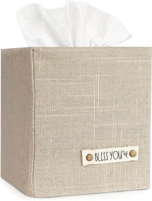 Truly A Beautiful Design: You?ll love the gorgeous functional design of the tissue box holder! The modern cover is simply amazing to prettify unsightly tissue boxes while also being super easy to handle with tissues coming out easy on the top! There is also a sophisticated ?bless you? tag as a visual eyecatcher