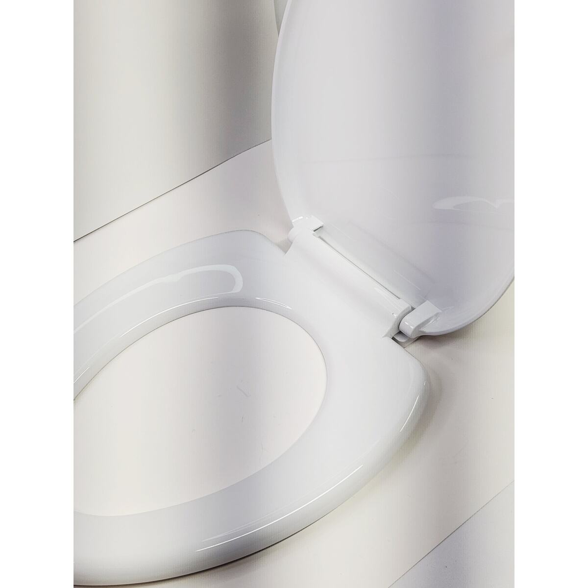 A great addition to your bathroom, the Traditional Slow-Closing Toilet Seat's lid shuts smoothly and quietly. Designed to fit on an elongated bowl, this durable product is made of heavy weight, molded plastic that features a shiny finish. Installs easily using the included, corrosion-resistant hardware.