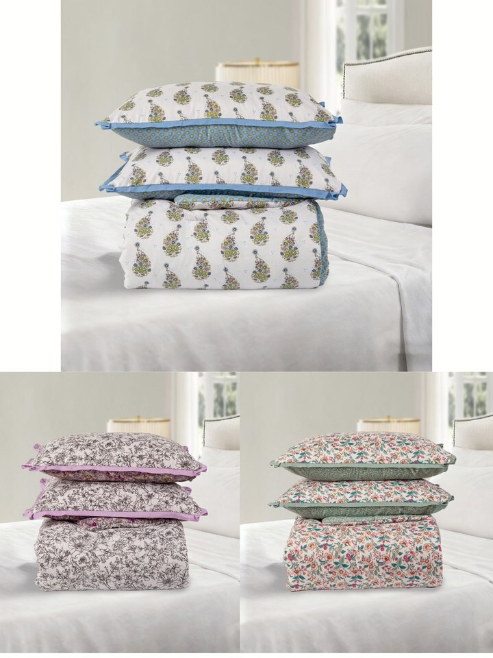 Includes 1 Comforter and 2 Shams and a printed fabric tote packaging