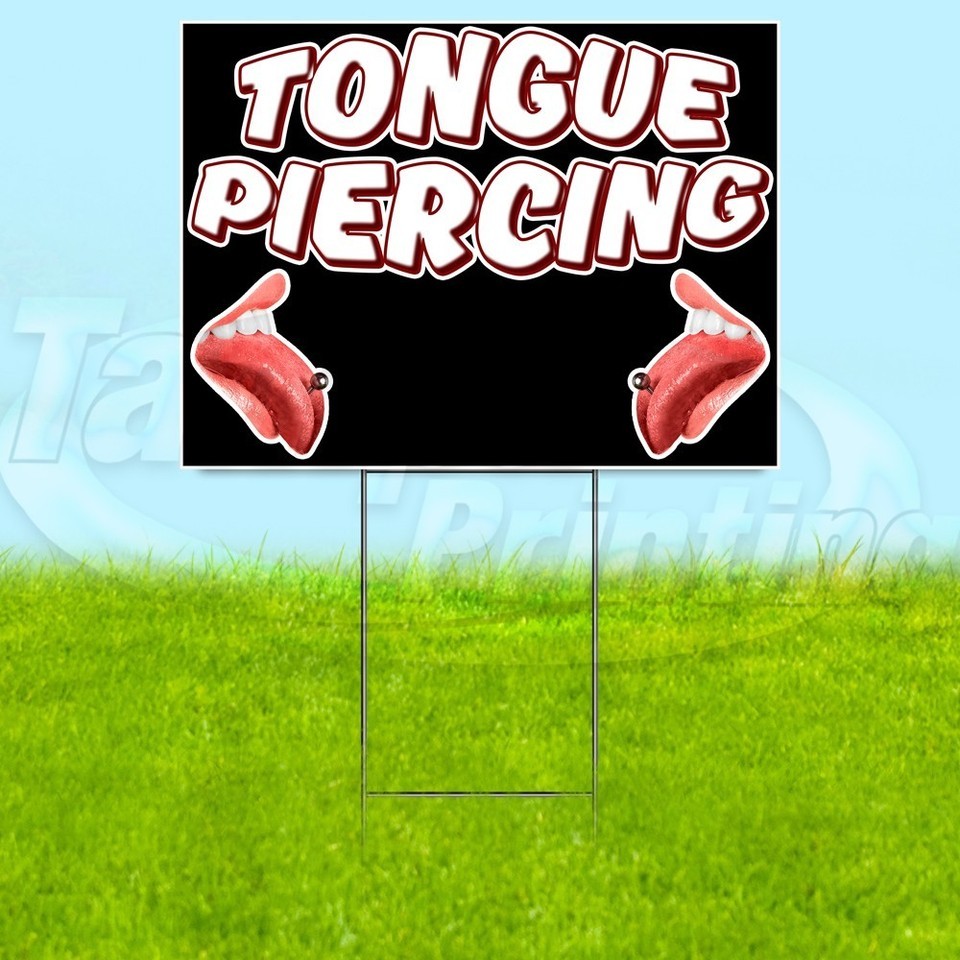 TONGUE PIERCING 18x24 Yard Sign Tattoo Plastic Corrugated WITH STAKE USA YS07832